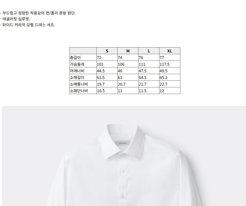 커스텀멜로우 와이드 카라 드레스 셔츠 화이트