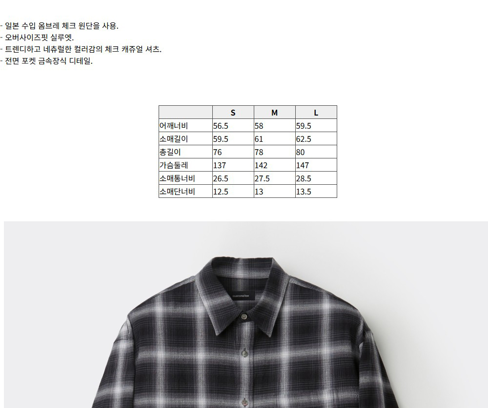 커스텀멜로우 오버사이즈 체크 셔츠 블랙