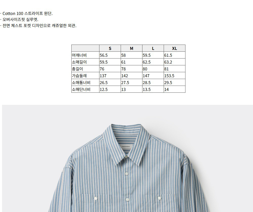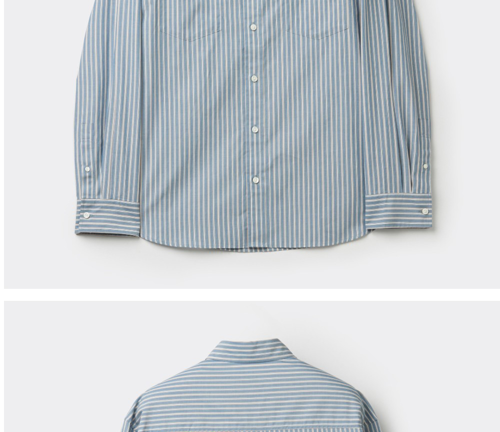 커스텀멜로우 오버사이즈 스트라이프 셔츠 그레이