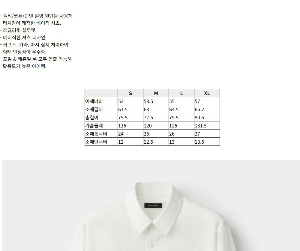 커스텀멜로우 레귤러 핏 솔리드 셔츠 화이트