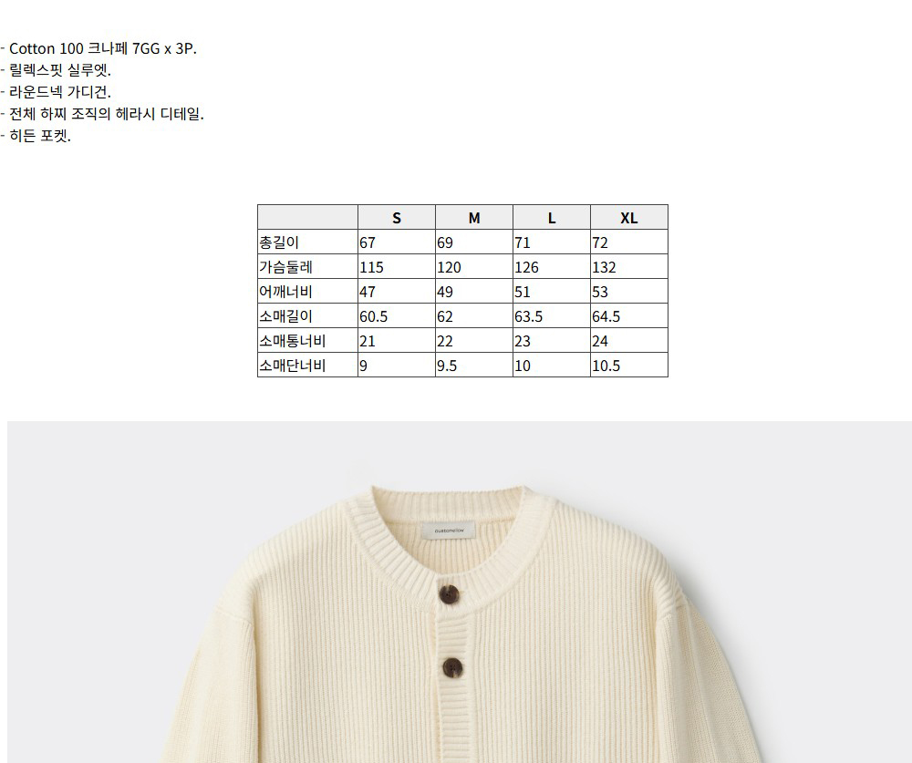 커스텀멜로우 코튼 라운드 가디건 아이보리