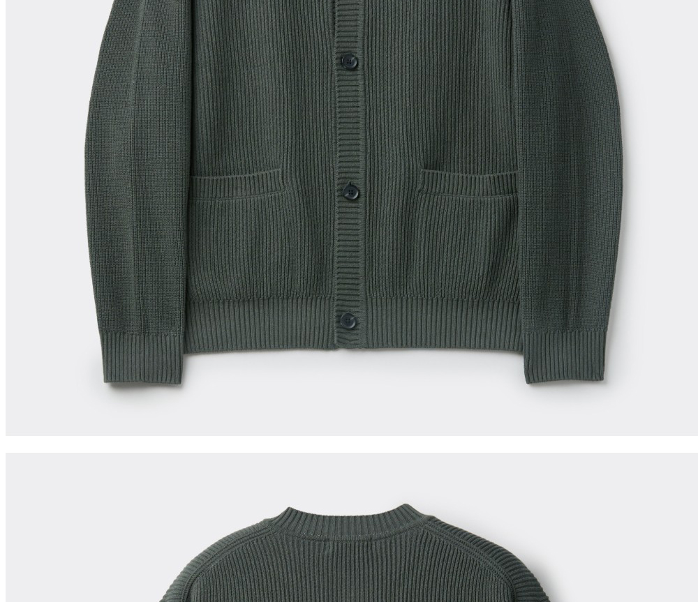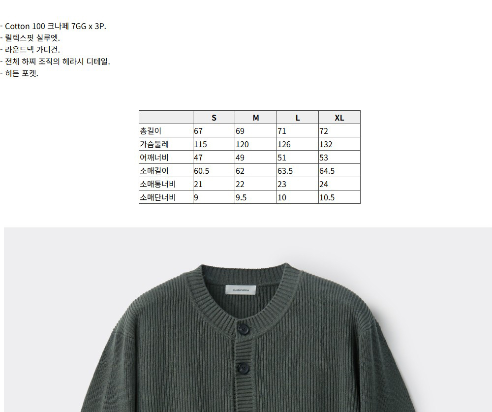 커스텀멜로우 코튼 라운드 가디건 카키