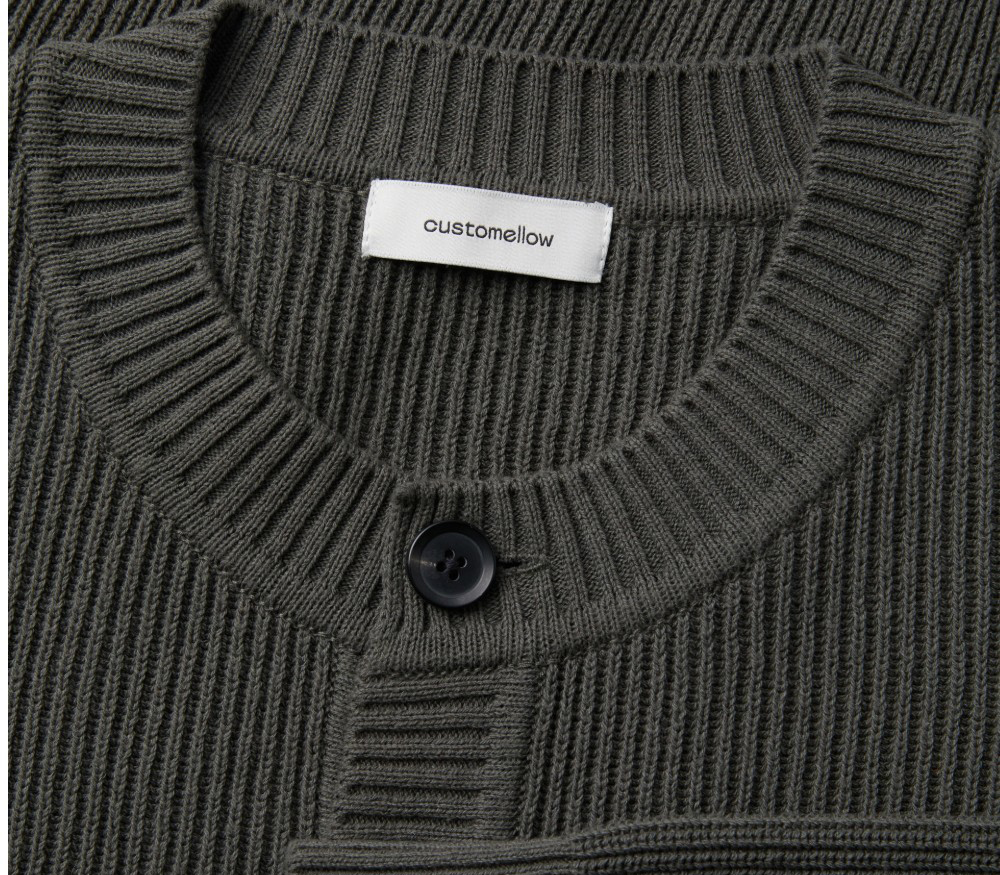Customellow Cotton Round Cardigan Khaki