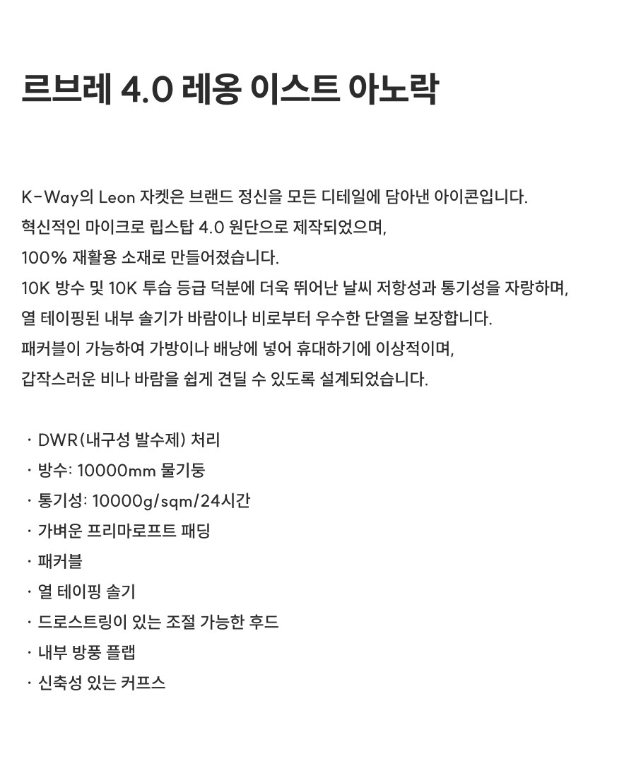 까웨 공용 르브레 4.0 레옹 이스트 아노락 블랙_Y256EUJ918