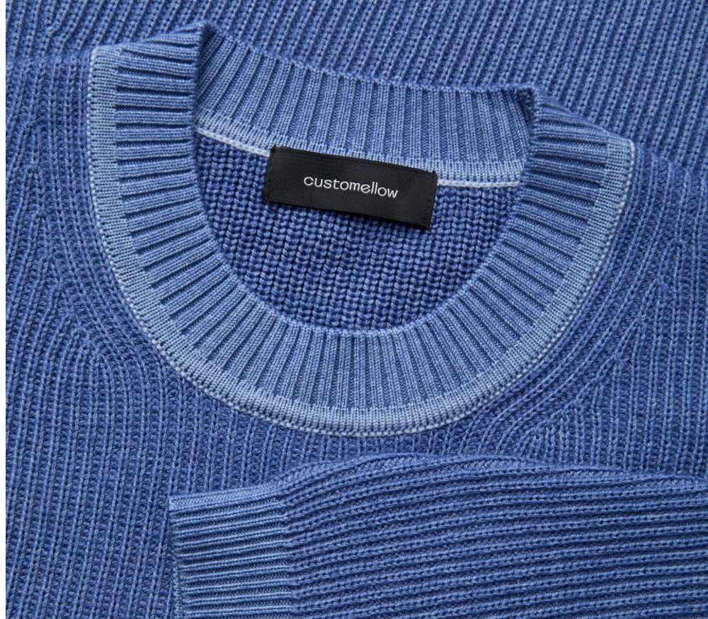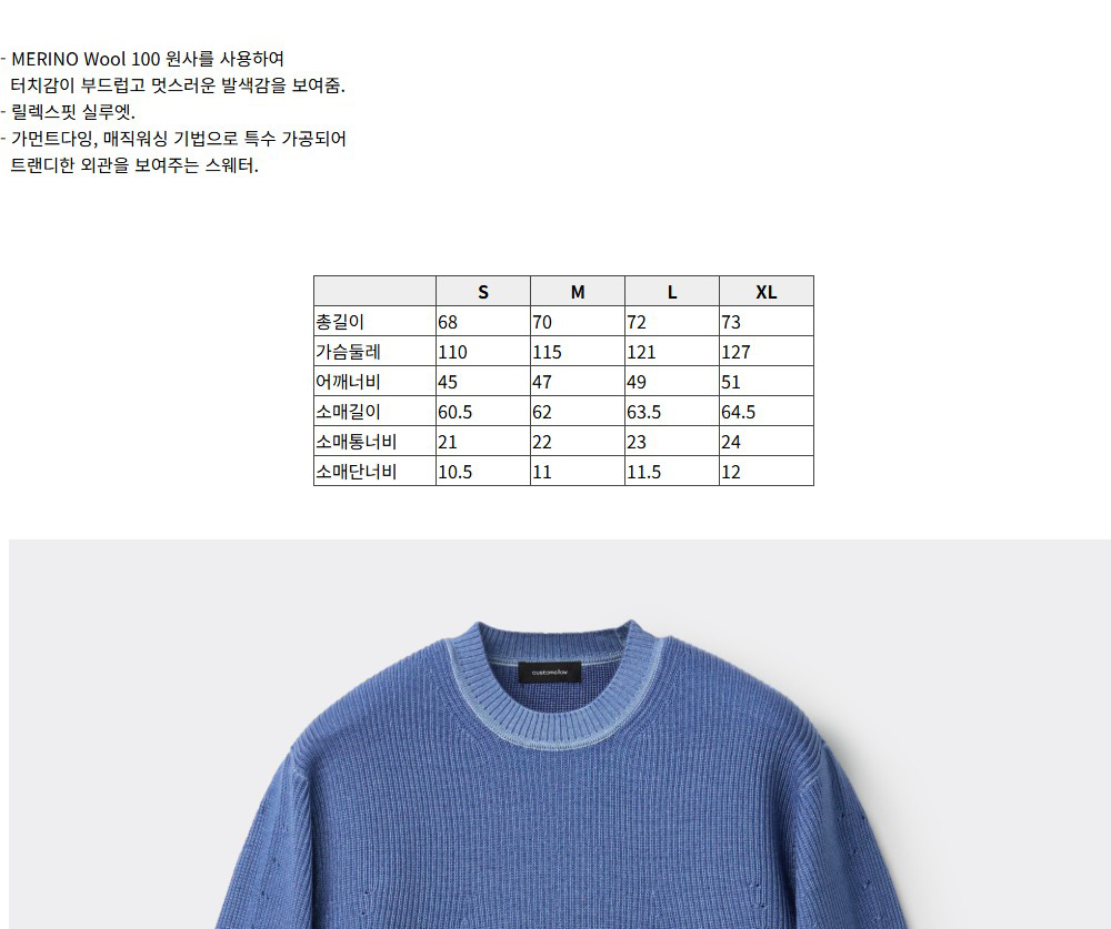 커스텀멜로우 가먼트 다이드 라운드 넥 스웨터 블루