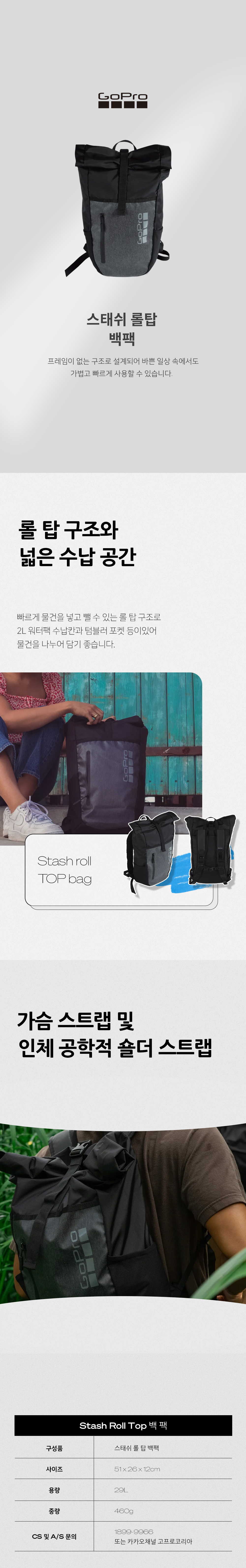 고프로 스태쉬 롤 탑 백팩