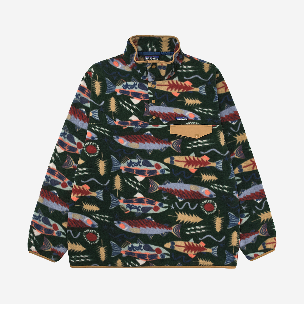 파타고니아 라이트웨이트 신칠라 스냅-T 플리스 풀오버 살몬 에너지 올드 그로스 그린
