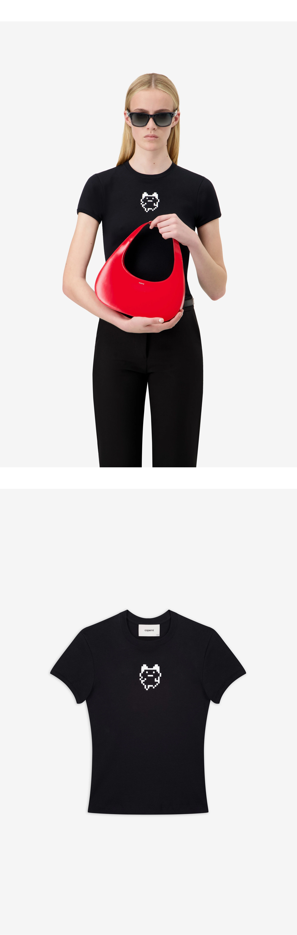 클래식 티셔츠에 레트로 무드를 더한 코페르니 우먼 코페르니 X 다마고치 베이비 티 블랙입니다. - 소프트한 스트레치 코튼으로 제작되어 바디를 슬림하게 감싸는 실루엣 - 가슴에는 2000년대 초반 디지털 감성을 담은 픽셀 타마고치 모티프가 포인트