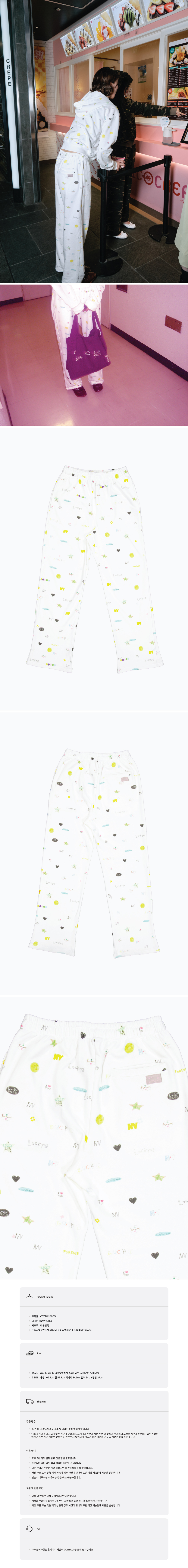 • 나비버스 러키 패턴 원단 • 나비버스 로고 자수 • 투 포켓 • 탄탄한 면 소재 • 모델 착용 사이즈 1