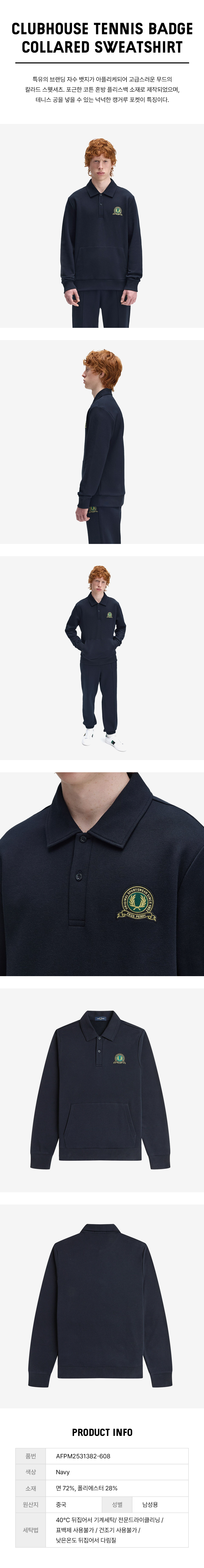 프레드 페리 클럽하우스 테니스 뱃지 칼라드 스웻셔츠 네이비
