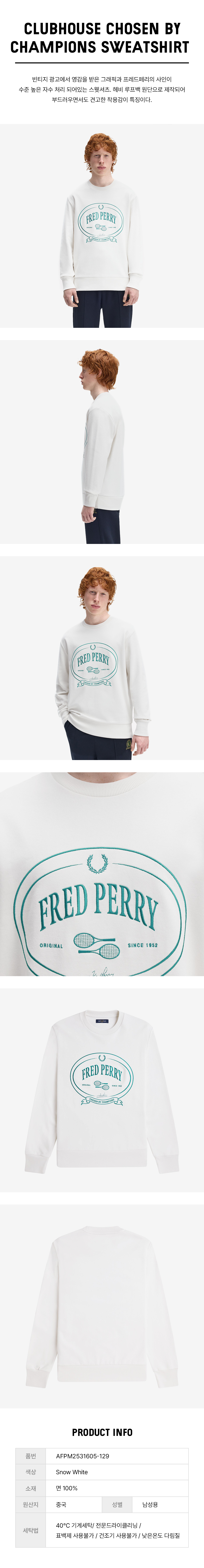 프레드 페리 클럽하우스 초즌 바이 챔피언스 스웻셔츠 스노우화이트