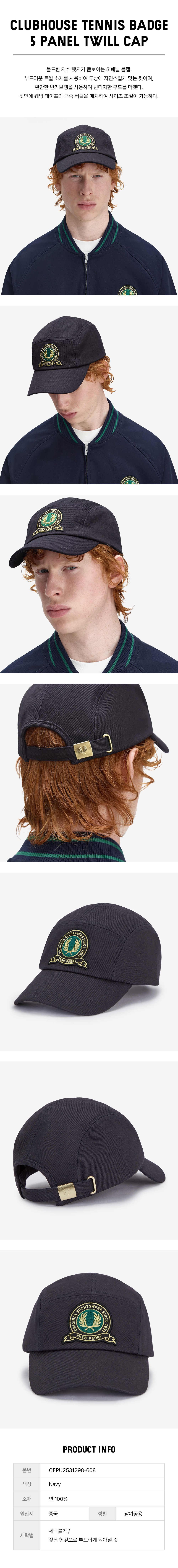 프레드 페리 클럽하우스 테니스 뱃지 5 패널 트윌 캡 네이비