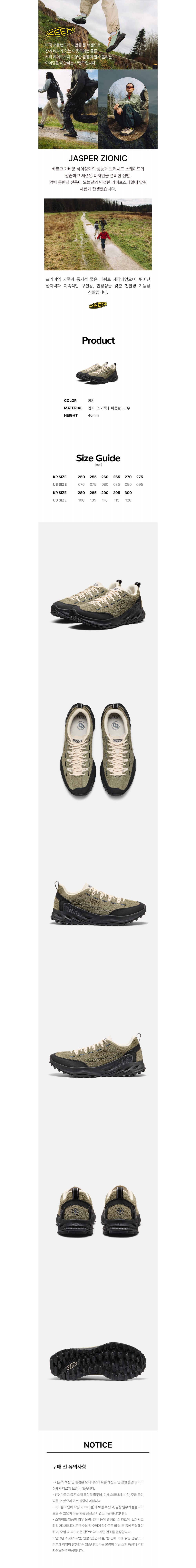 킨 재스퍼 자이오닉 카키 남성 스니커즈