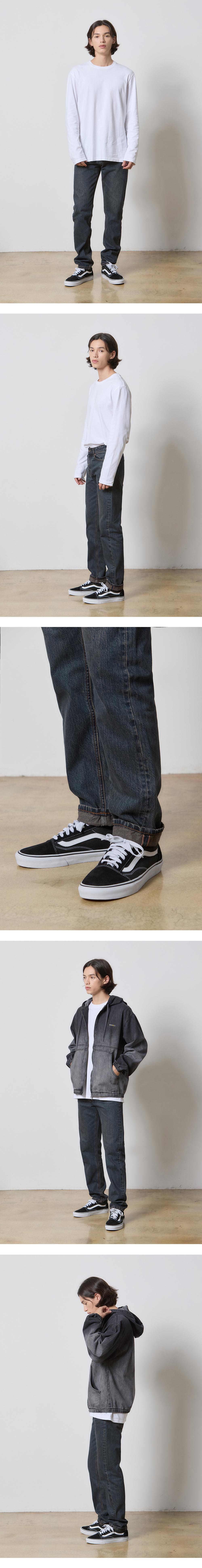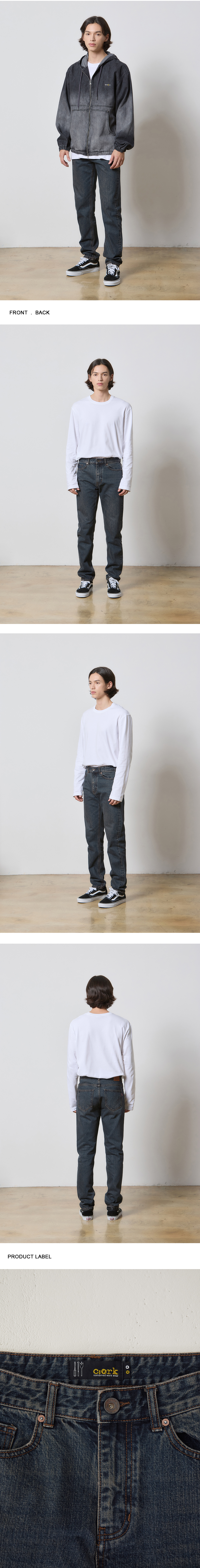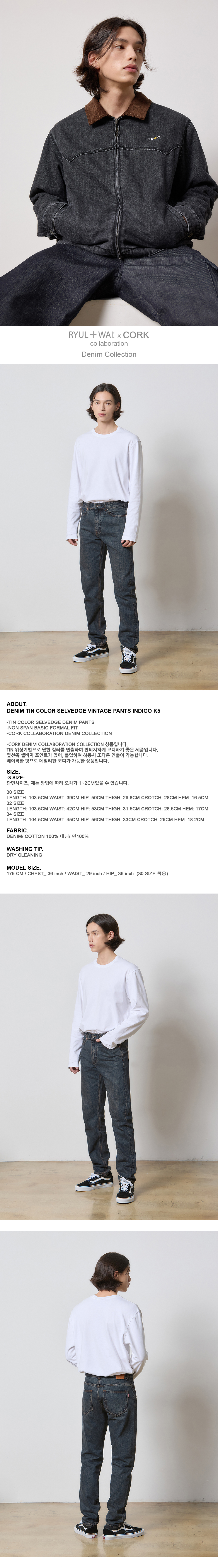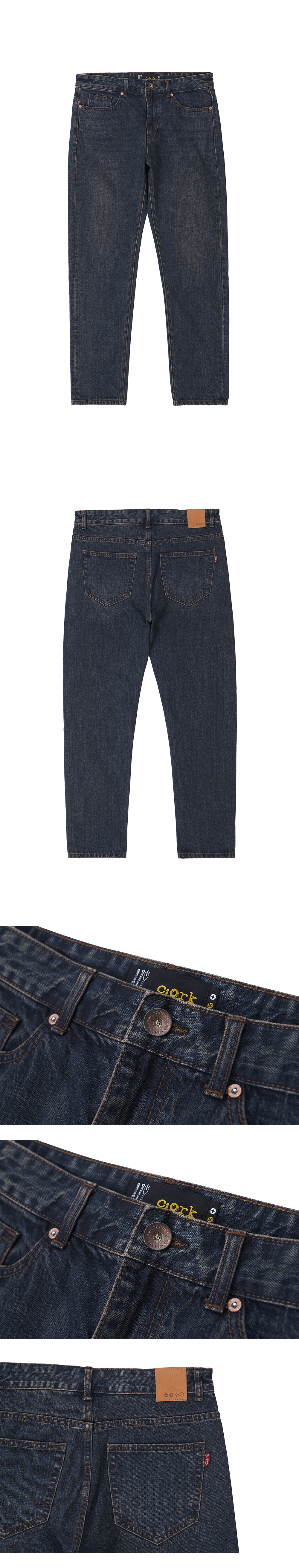 -CORK DENIM COLLABORATION COLLECTION 상품입니다. TIN 워싱기법으로 웜한 컬러를 연출하여 빈티지하게 코디하기 좋은 제품입니다. 옆선쪽 셀비지 포인트가 있어, 롤업하여 착용시 또다른 연출이 가능합니다. 베이직한 핏으로 데일리한 코디가 가능한 상품입니다.