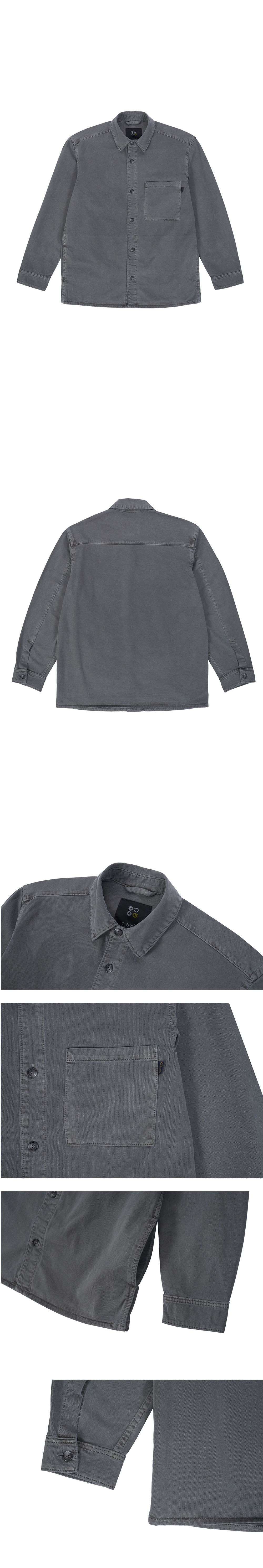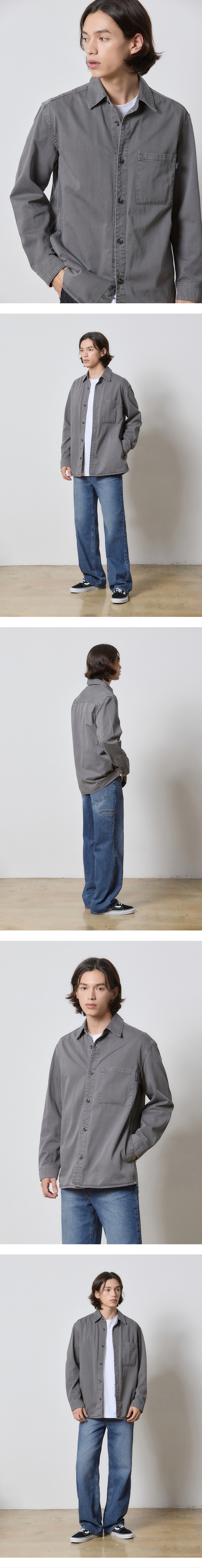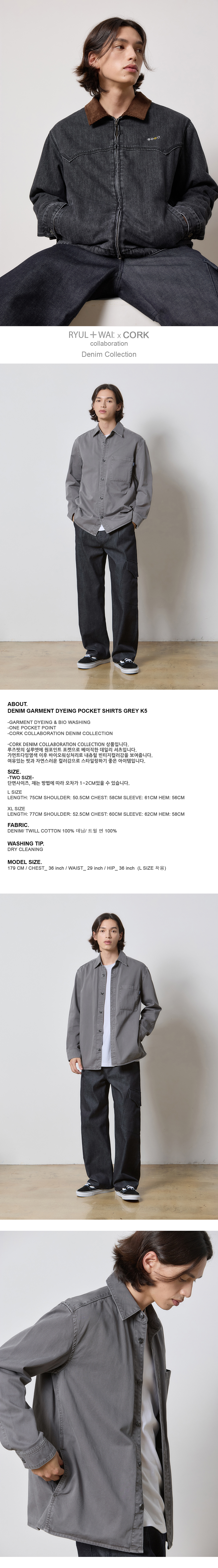 -CORK DENIM COLLABORATION COLLECTION 상품입니다. 루즈핏의 실루엣에 원포인트 포켓으로 베이직한 데일리 셔츠입니다. 가먼트다잉염색 이후 바이오워싱처리로 내츄럴 빈티지컬러감을 보여줍니다. 여유있는 핏과 자연스러운 컬러감으로 스타일링하기 좋은 아이템입니다.
