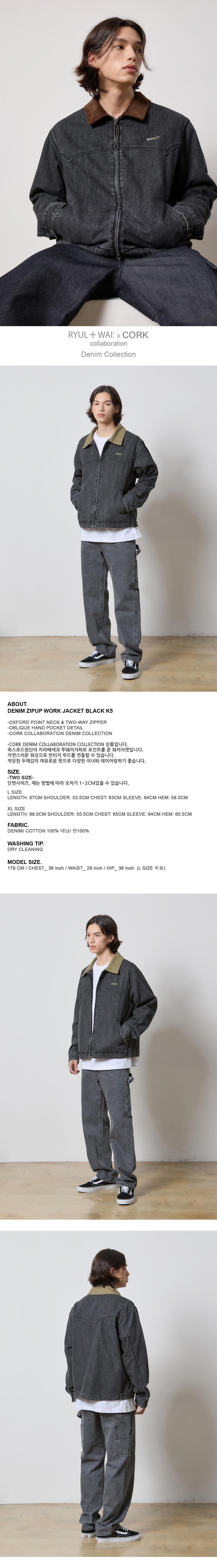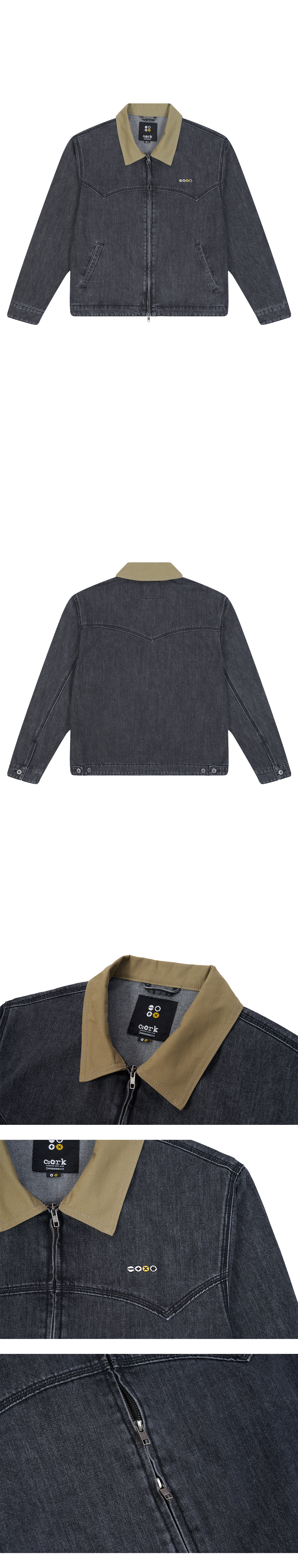 -CORK DENIM COLLABORATION COLLECTION 상품입니다. 옥스포드원단의 카라배색과 투웨이지퍼로 포인트를 준 워커자켓입니다. 자연스러운 워싱으로 빈티지 무드를 연출할 수 있습니다. 적당한 두께감의 여유로운 핏으로 다양한 이너와 레이어링하기 좋습니다.