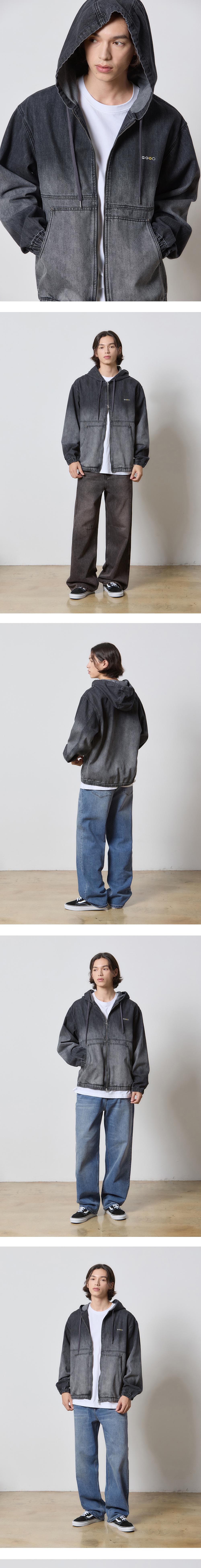 -CORK DENIM COLLABORATION COLLECTION 상품입니다. 투웨이지퍼로 다양한 코디가 가능하며, 소매와 밑단의 밴딩으로 활동성이 좋은 제품입니다. 몸판 전체 그라이데이션 워싱으로 유니크함이 돋보입니다. 적당한 두께감에 여유있는 핏으로 다양한 이너와 스타일링 하기 좋은 아우터입니다.