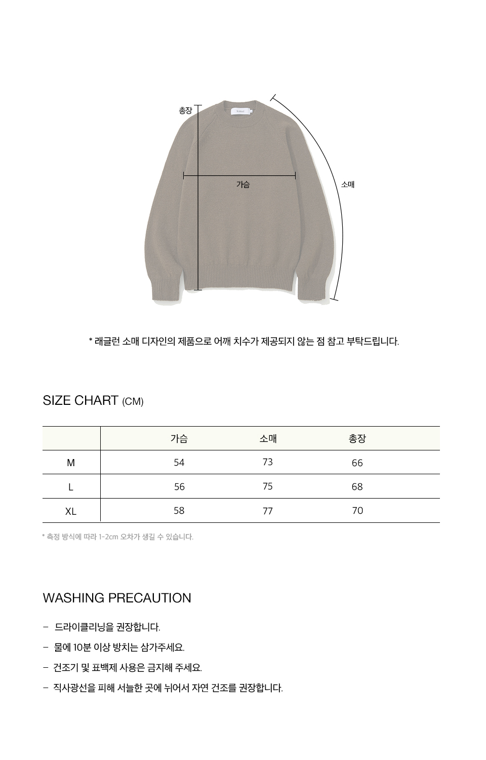측정 방법에 따라 사이즈에 일부 오차가 있을 수 있습니다.