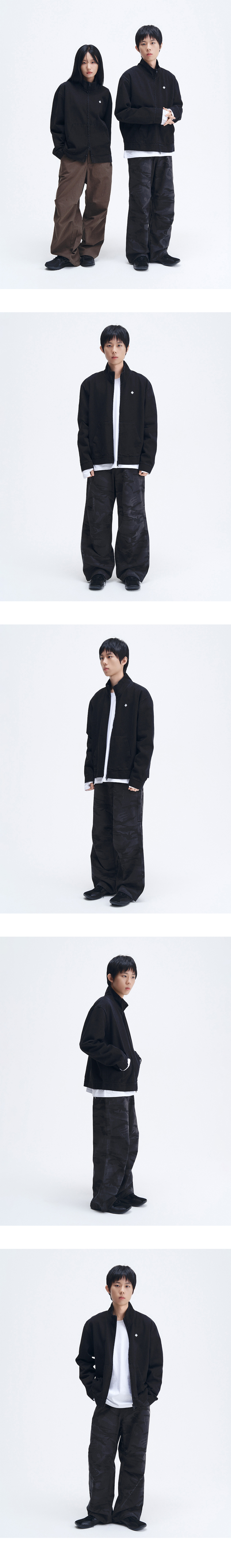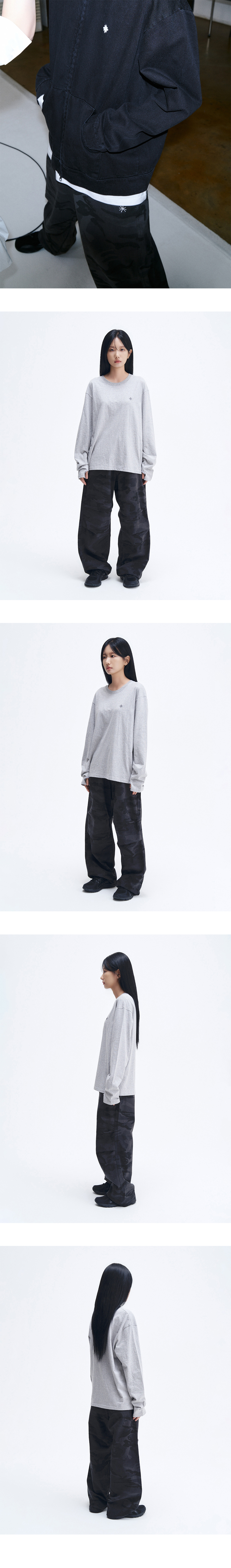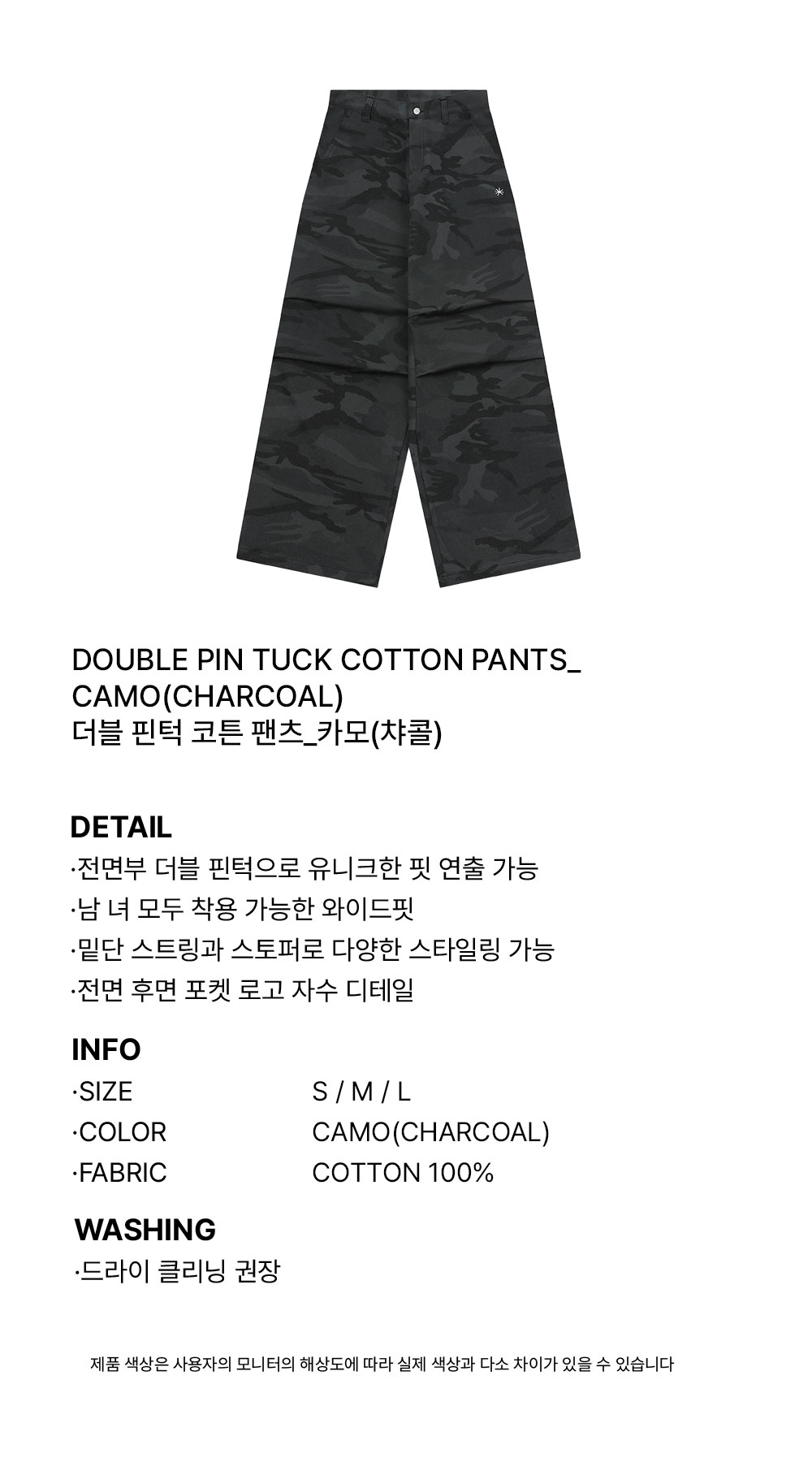 슬로우 레코드 하우스 더블 핀턱 코튼 팬츠 카모 챠콜
