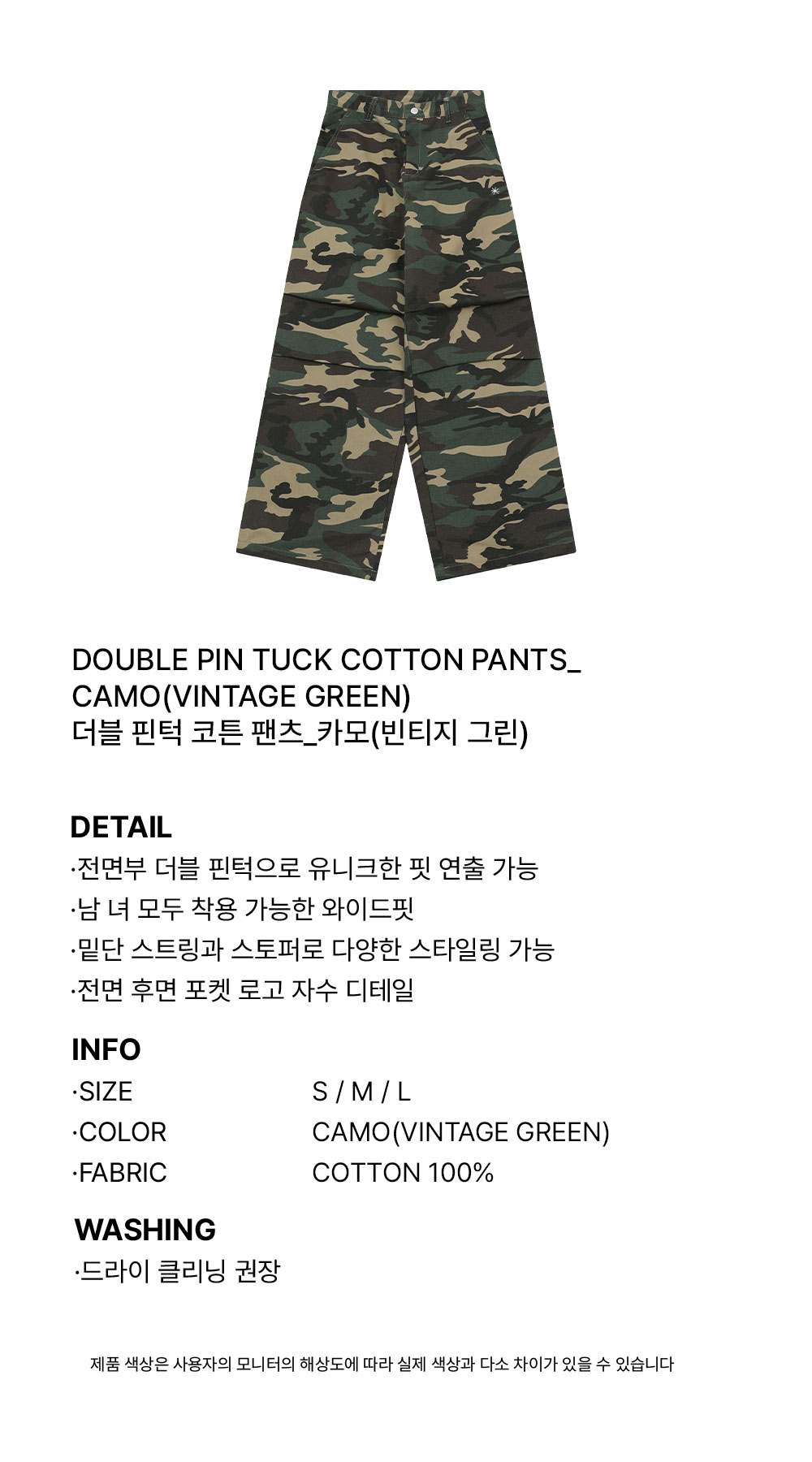 슬로우 레코드 하우스 더블 핀턱 코튼 팬츠 카모 빈티지 그린