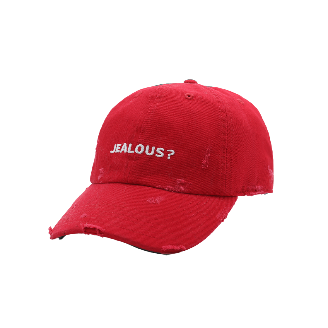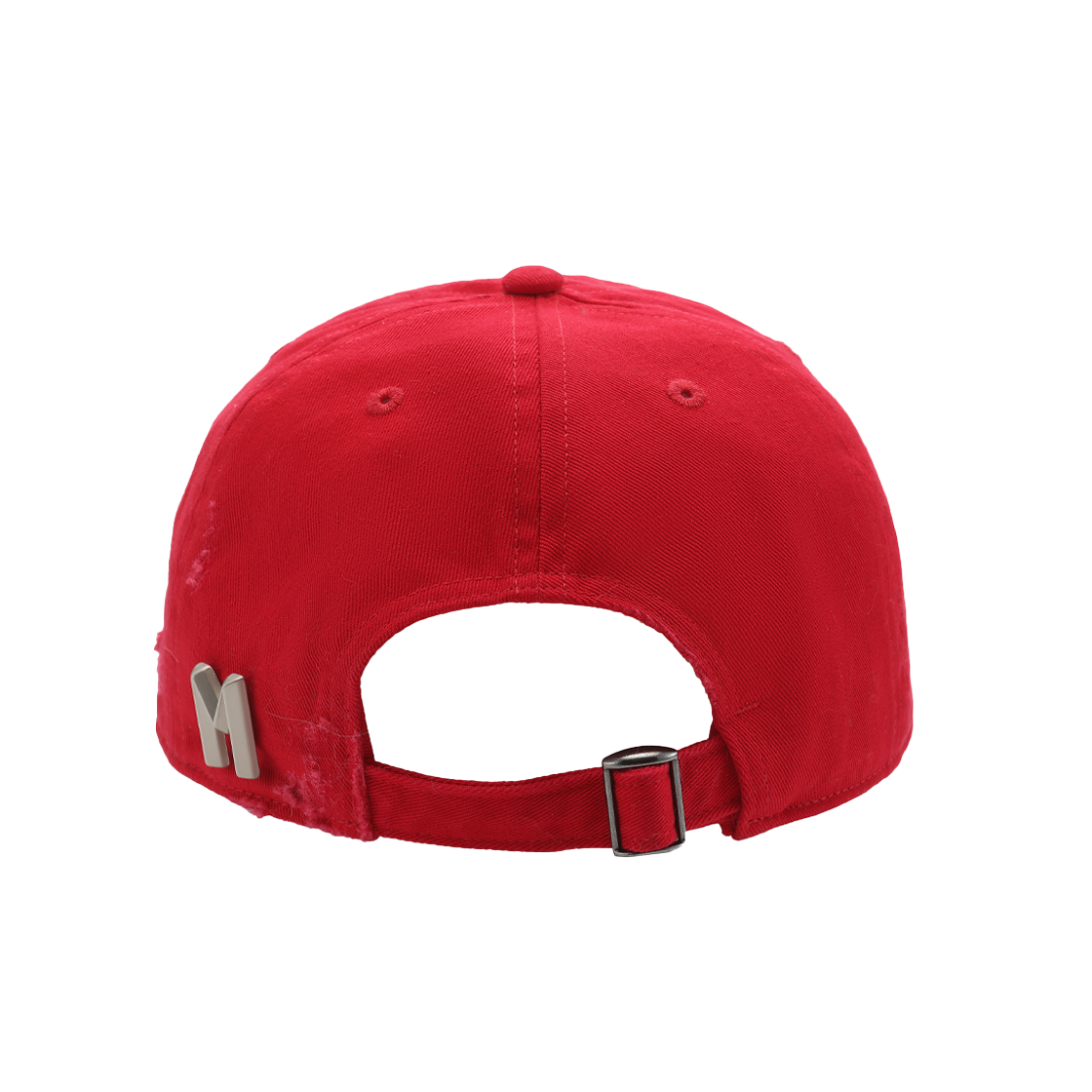 강렬한 레드 컬러와 해진 디테일, 전면 레터링이 돋보이는 마크공 우먼 "질러스?" 디스트레스트 베이스볼 캡 레드입니다. - 강렬한 레드 컬러의 베이스볼 캡 - 전면에 “JEALOUS?” 화이트 자수 레터링 디테일 - 전체적으로 들어간 디스트레스트(해짐) 가공으로 빈티지 감성 강조 - 챙(visor) 부분에도 마모 디테일을 더해 개성 있는 무드 완성 - 캐주얼하면서도 스트리트웨어 스타일에 포인트 아이템으로 활용 가능 - 뒷면 스트랩으로 사이즈 조절이 가능해 다양한 착용자에게 적합 - 단순 액세서리가 아닌 스타일을 드러내는 메시지성 아이템