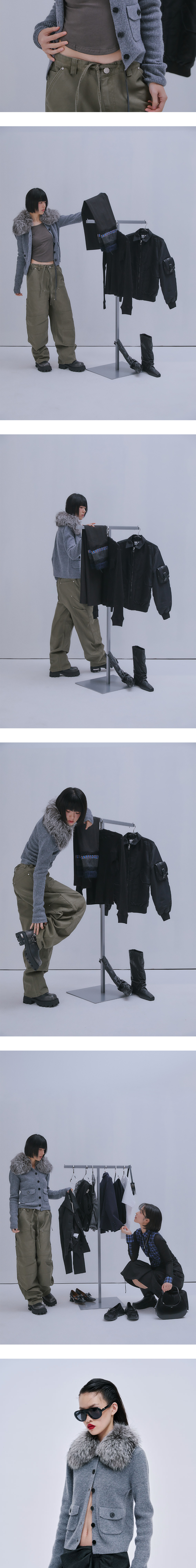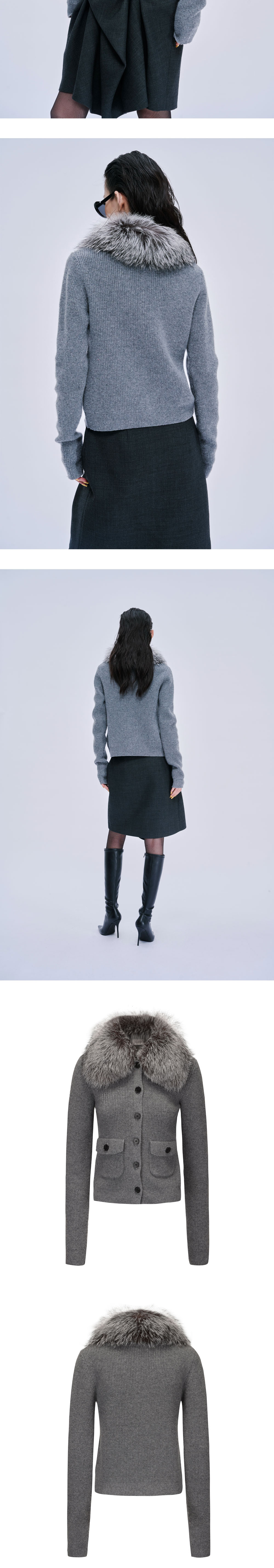 마크공 우먼 실버 폭스 퍼 칼라 니티드 가디건 그레이 - 25FW