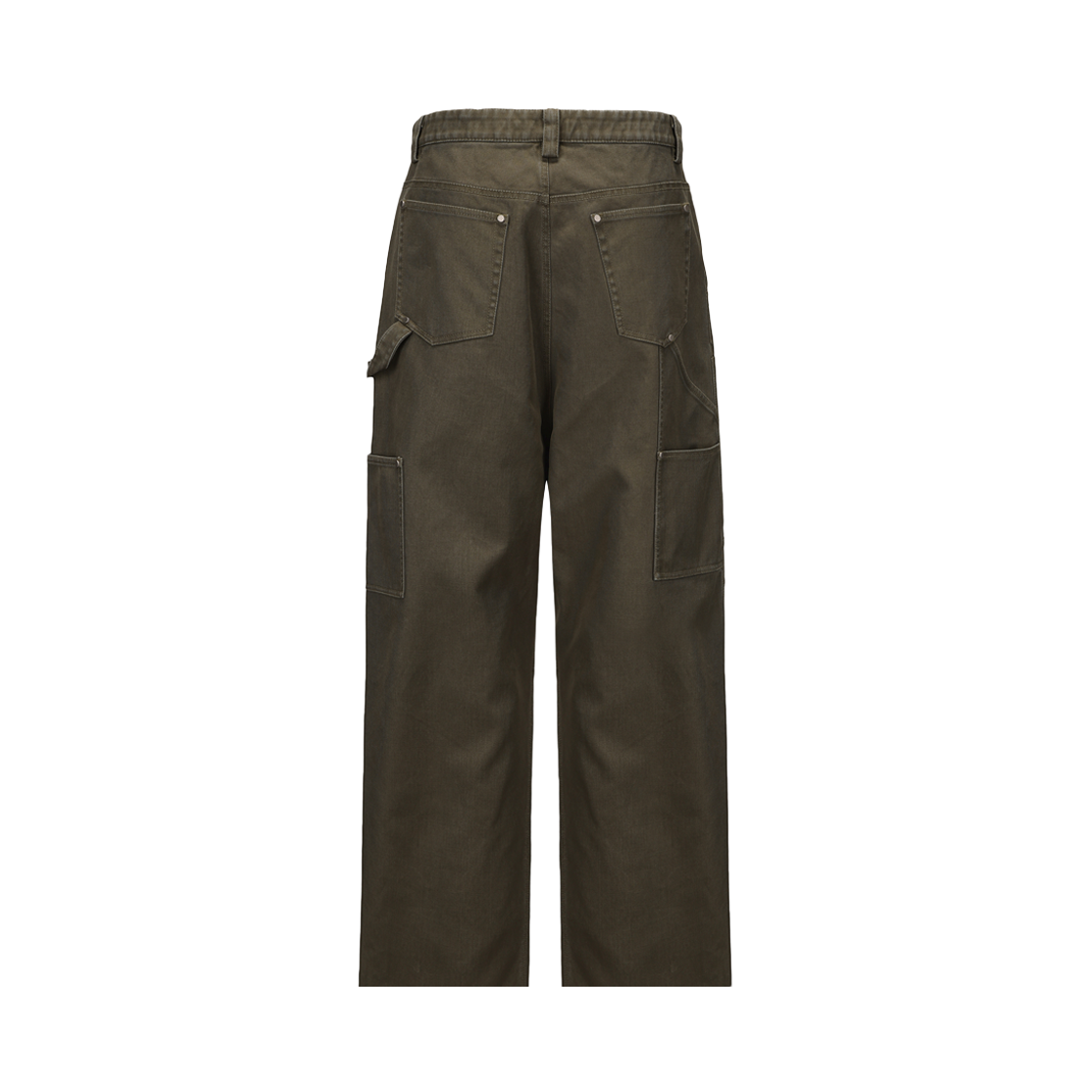 워크웨어 무드와 실용적인 디테일이 돋보이는 마크공 우먼 카고 팬츠 그린입니다. - 다크 카키 컬러의 와이드 핏 팬츠 - 전체적으로 루즈한 실루엣으로 편안한 착용감 제공 - 허리 스트링 디테일로 사이즈 조절 가능 - 스티치 라인과 절개 디테일로 입체감 있는 디자인 - 사이드와 다리에 포켓이 배치되어 실용성 강화 - 워크웨어 무드가 느껴지는 카고 스타일 팬츠 - 캐주얼부터 스트리트룩까지 다양한 코디에 활용 가능