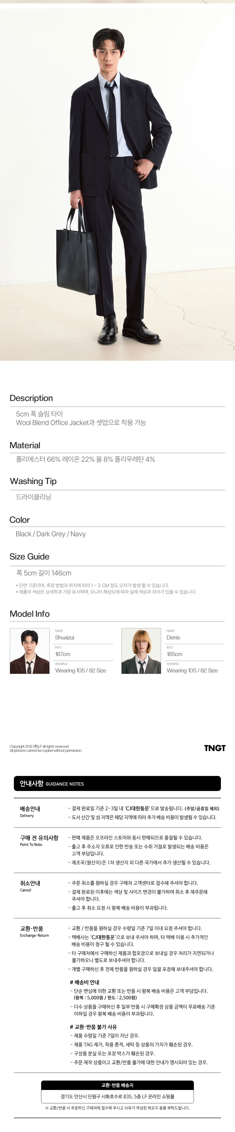 티엔지티 컴포트 슬림 타이 네이비