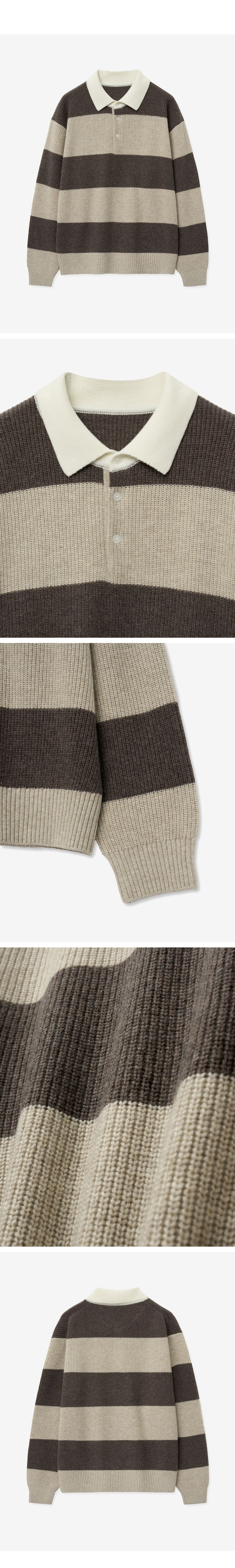 티엔지티 오버사이즈 럭비 폴로 니트 탑 브라운