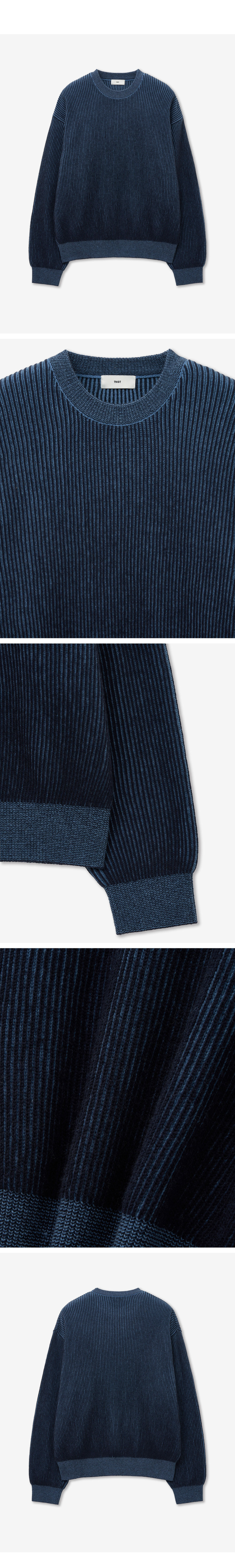 티엔지티 컨트라스트 립 니트 탑 빈티지 네이비