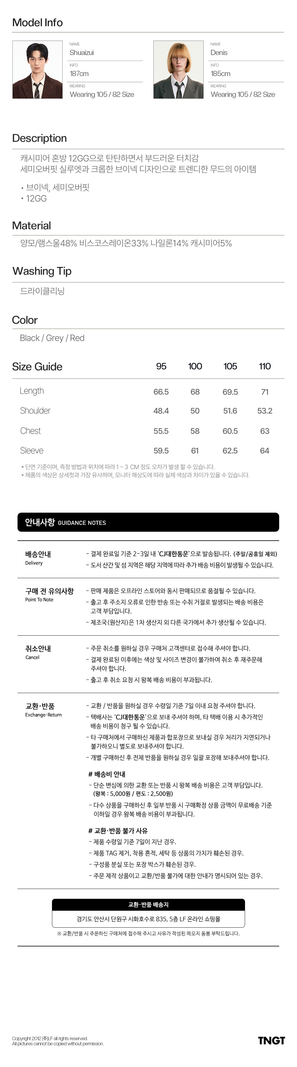 티엔지티 캐시미어 블렌디드 브이넥 니트 탑 레드