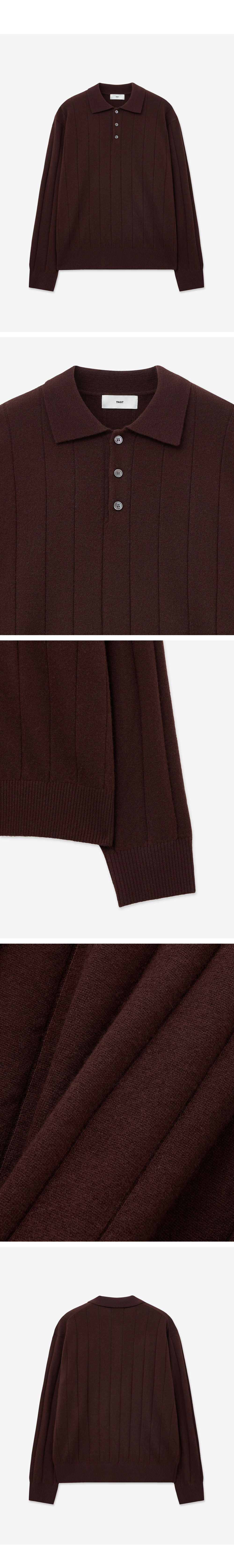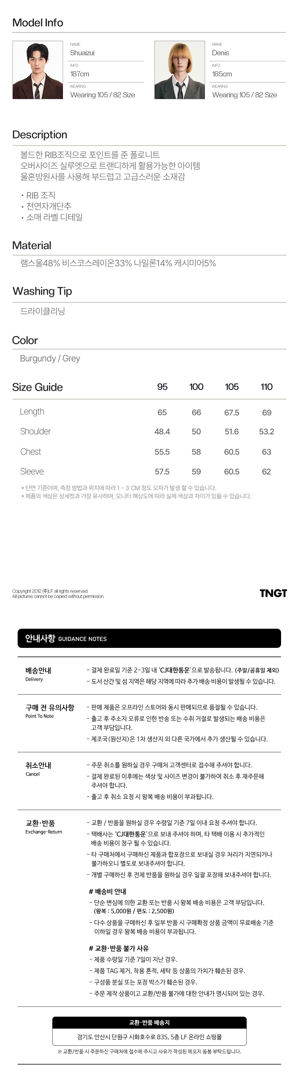 티엔지티 오버사이즈 립 폴로 니트 탑 버건디