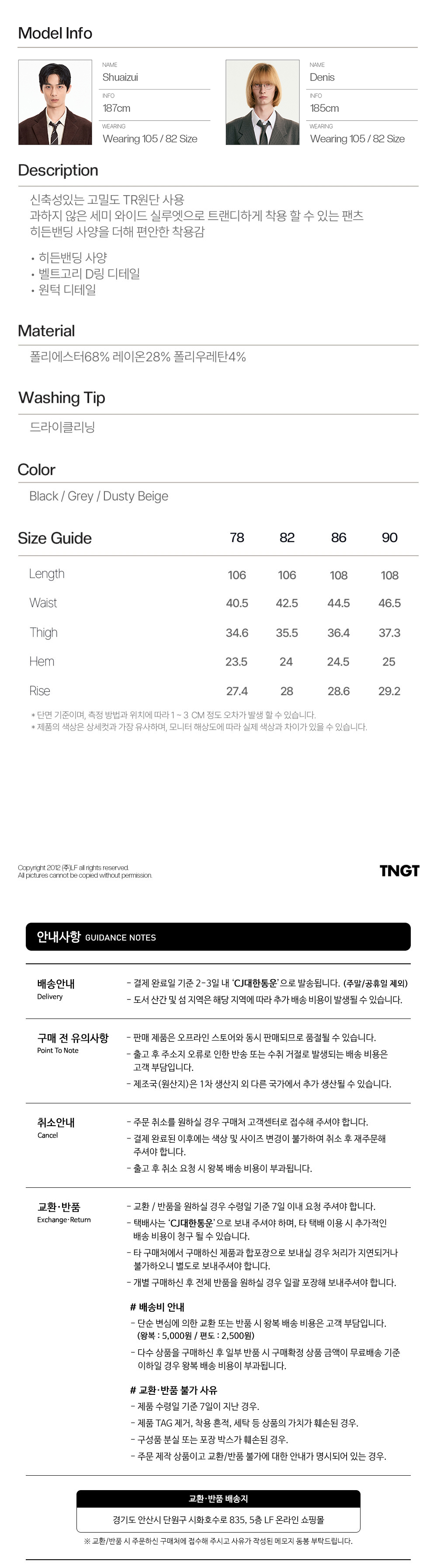 티엔지티 에센셜 세미 와이드 핏 팬츠 블랙