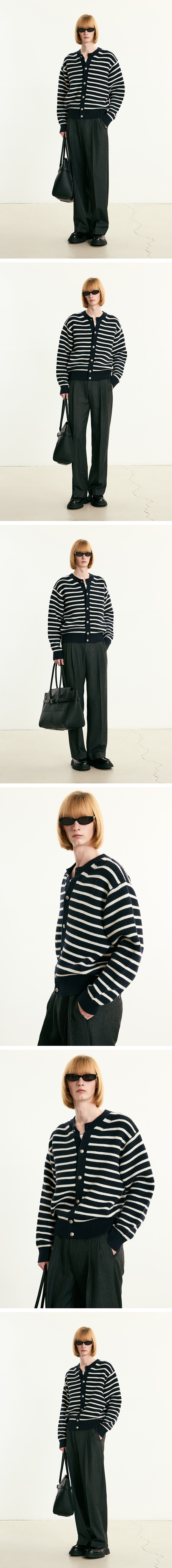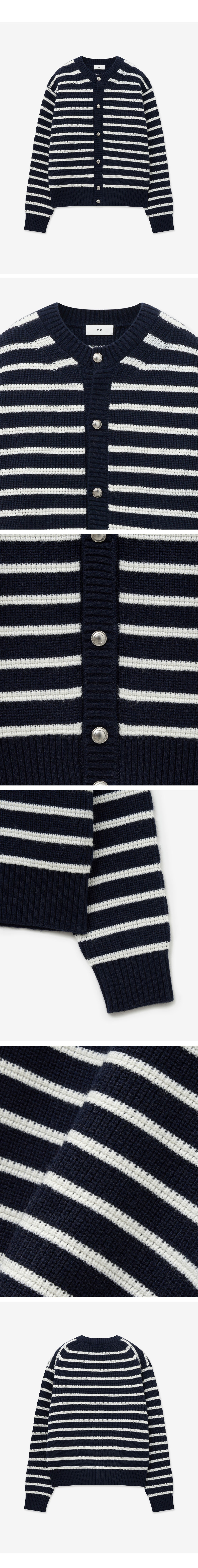 티엔지티 청키 울 니트 가디건 네이비 스트라이프