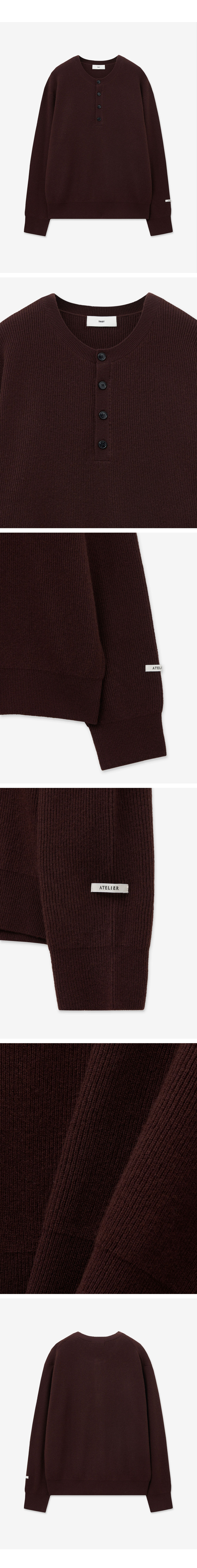 티엔지티 오버사이즈 립 헨리넥 니트 버건디