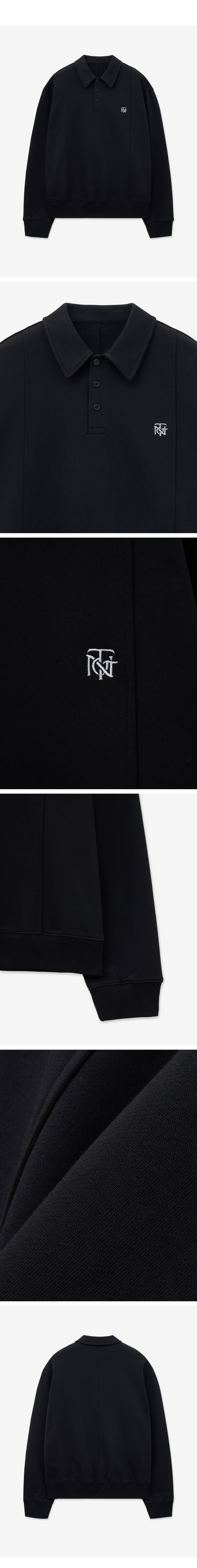 티엔지티 자수 로고 폴로 스웨트셔츠 블랙