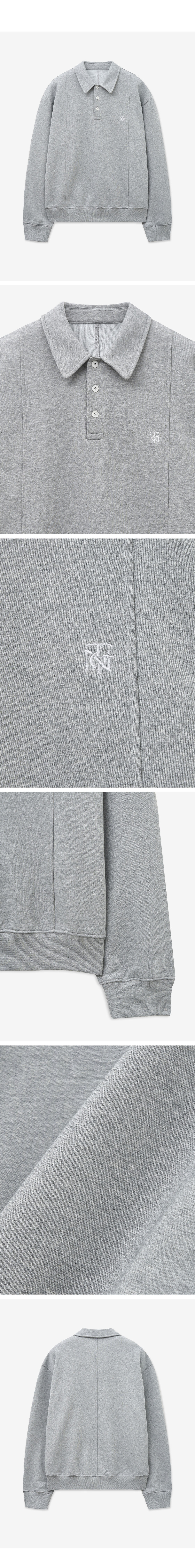 티엔지티 자수 로고 폴로 스웨트셔츠 그레이