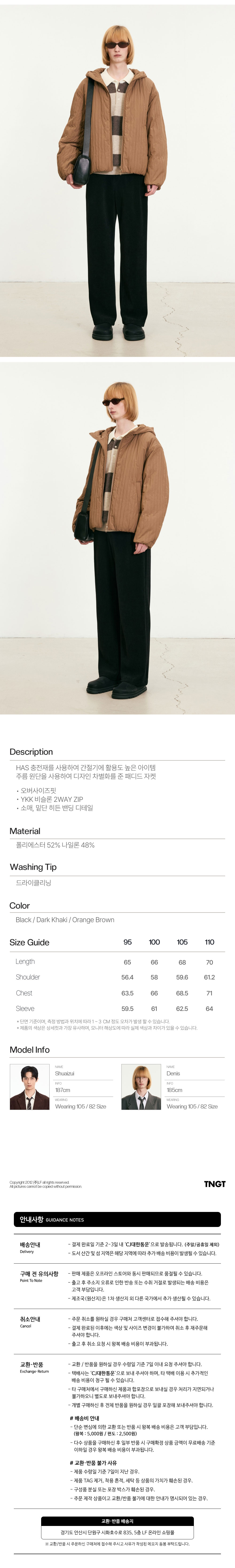 티엔지티 라이트 패디드 후디 자켓 오렌지 브라운