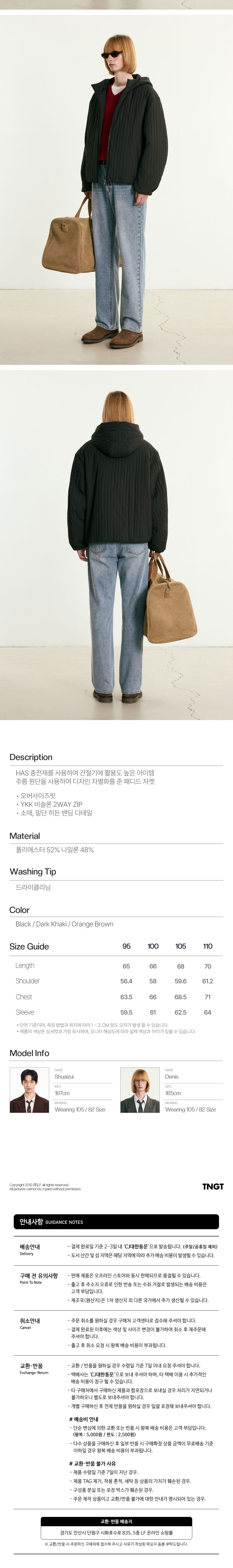 티엔지티 라이트 패디드 후디 자켓 다크 카키