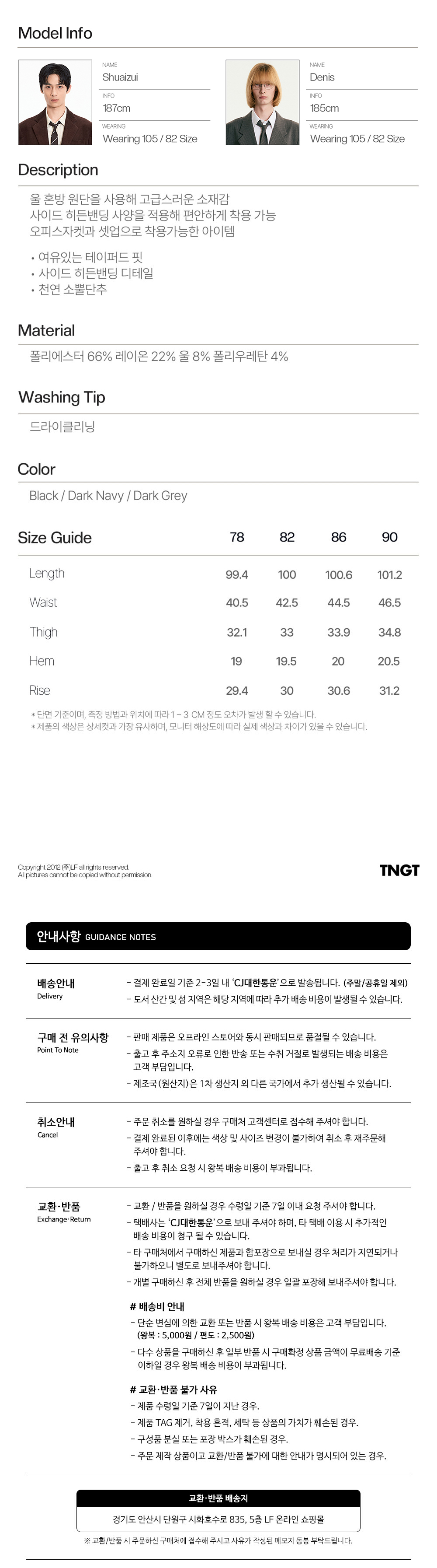 티엔지티 울 블렌디드 테이퍼드 핏 컴포트 팬츠 블랙
