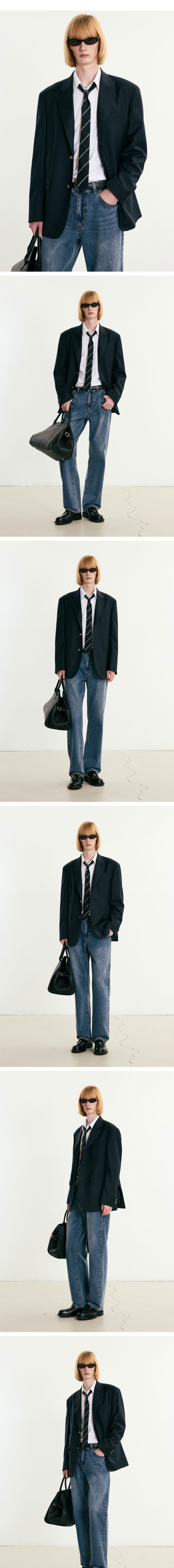 티엔지티 프레이보이 울 블렌디드 골드 버튼 블레이저 네이비