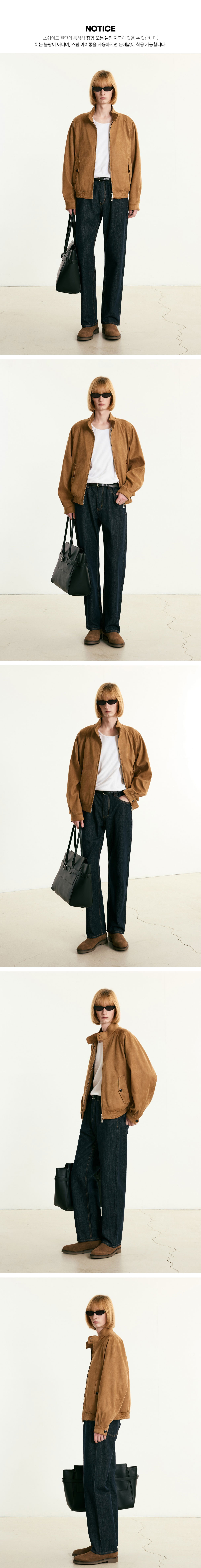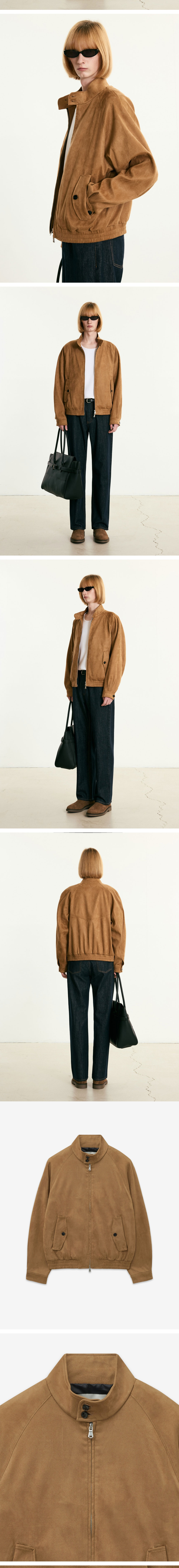 티엔지티 페이크 스웨이드 헤링턴 점퍼 카멜 브라운