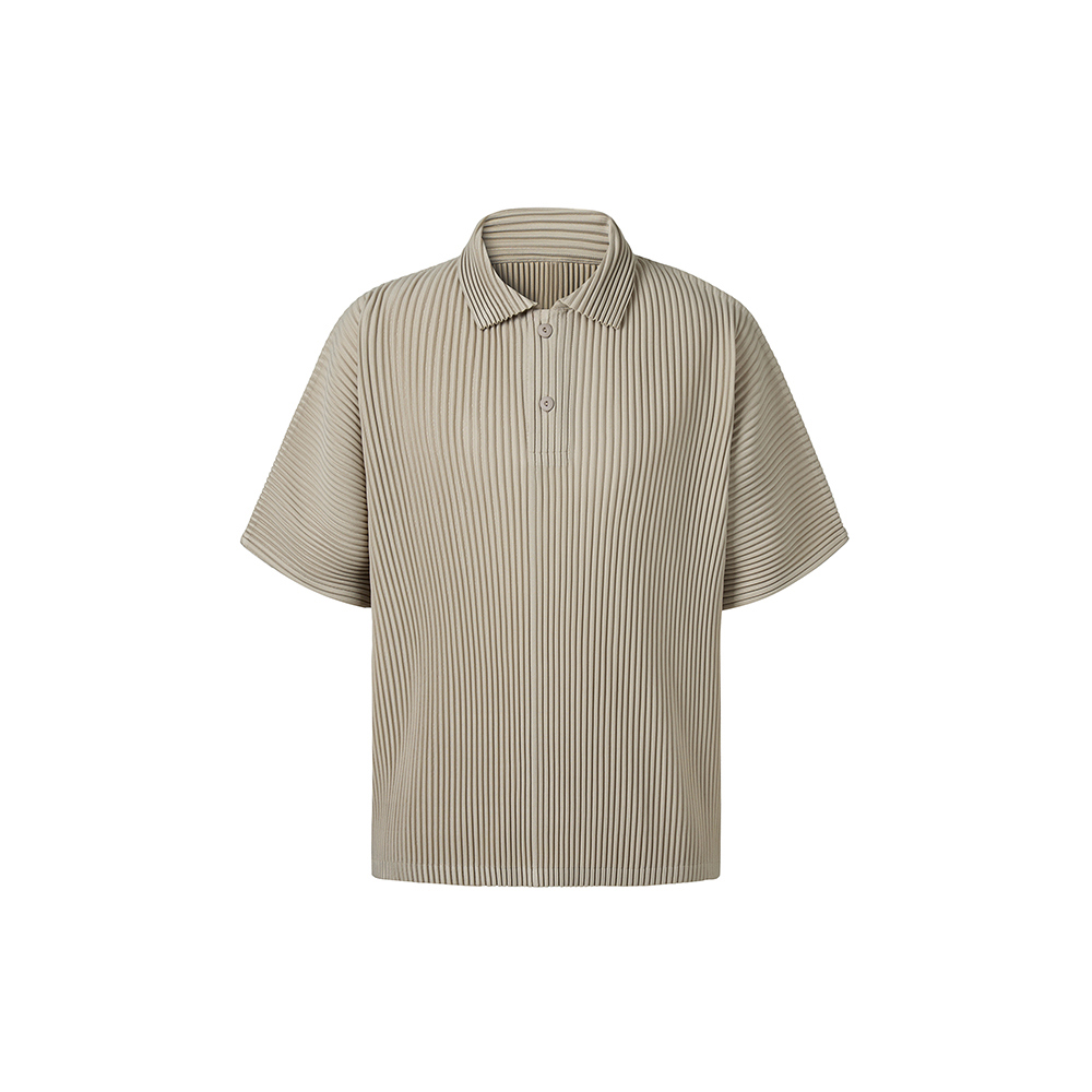 몽플리쎄 공용 카라넥 반소매 플리쎄 티셔츠 라이트 베이지