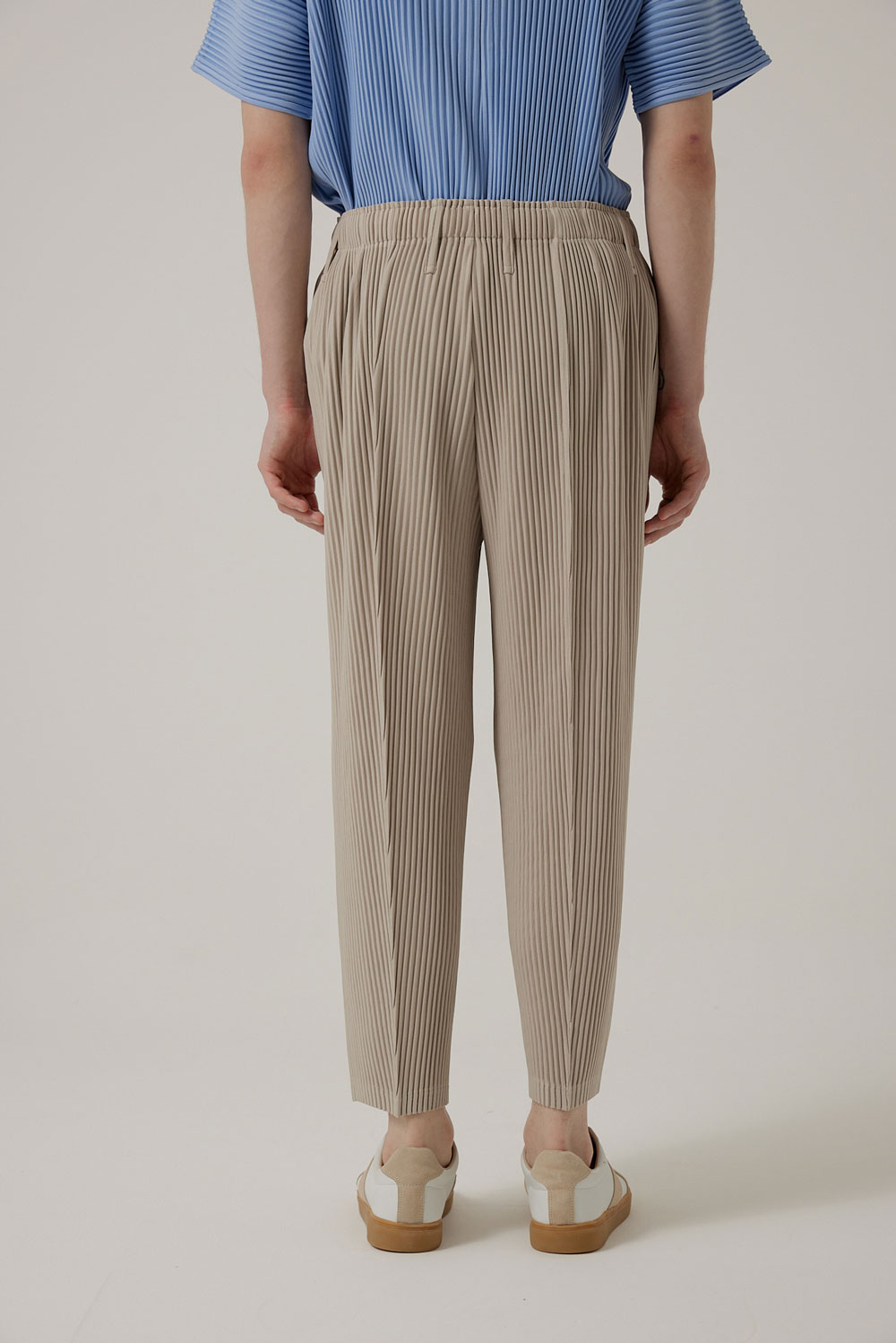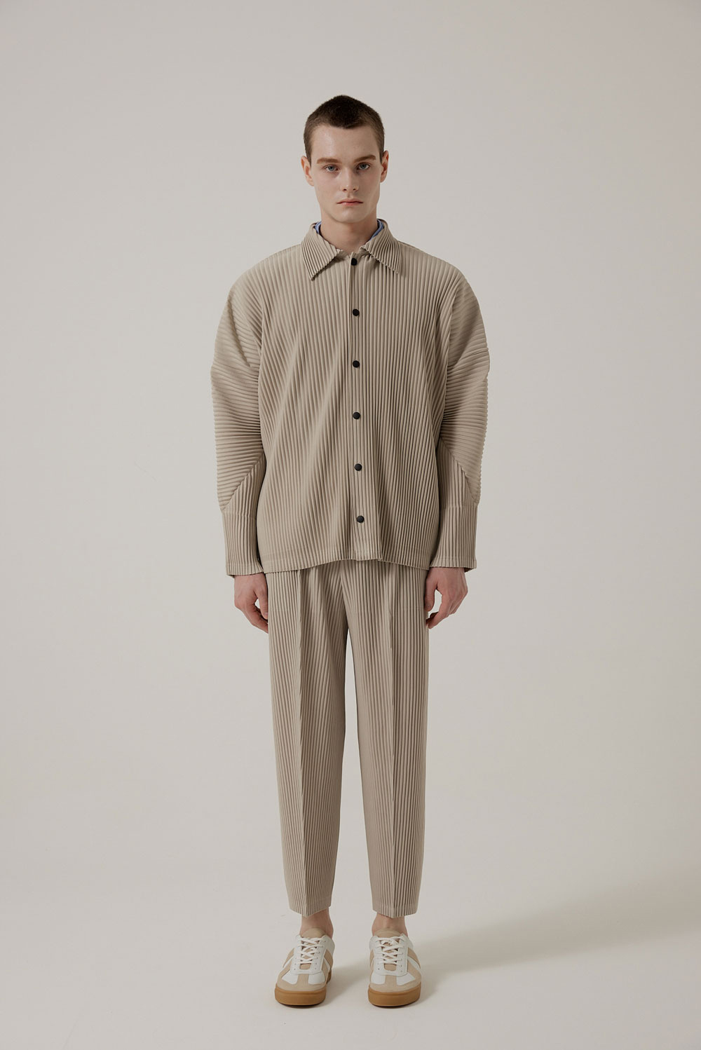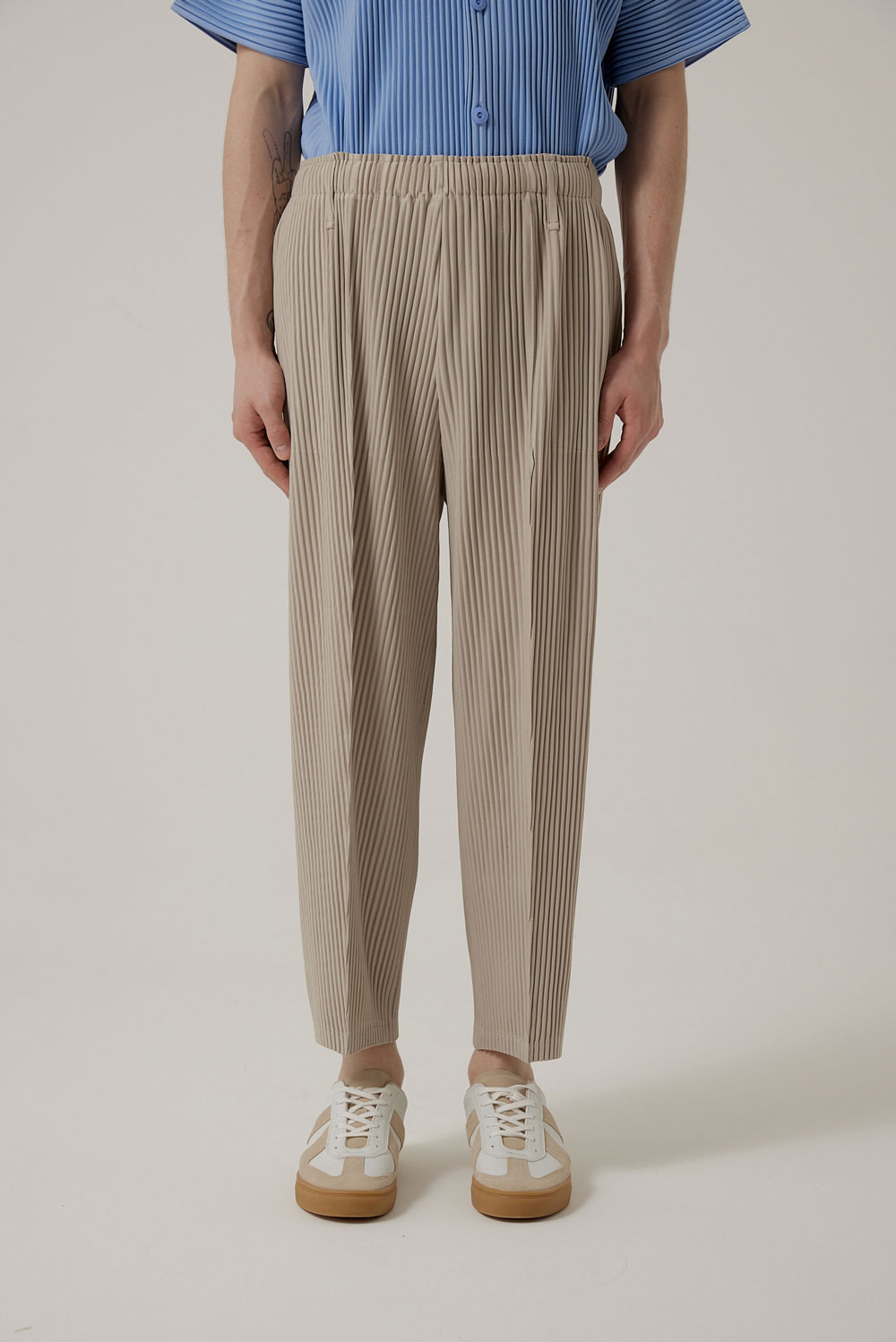 몽플리쎄 공용 턱 플리츠 스트레이트 팬츠 라이트 베이지