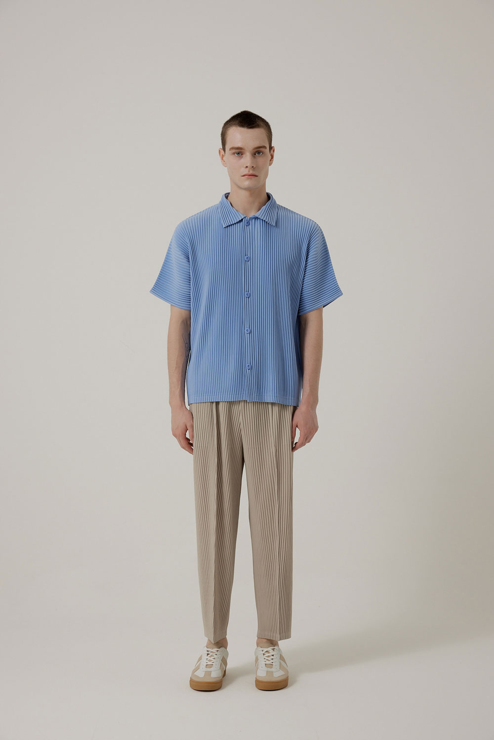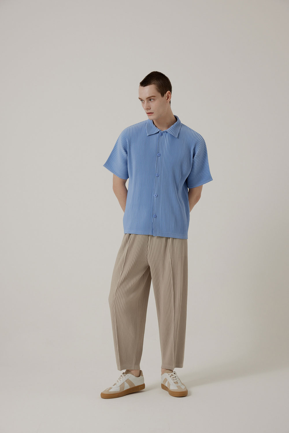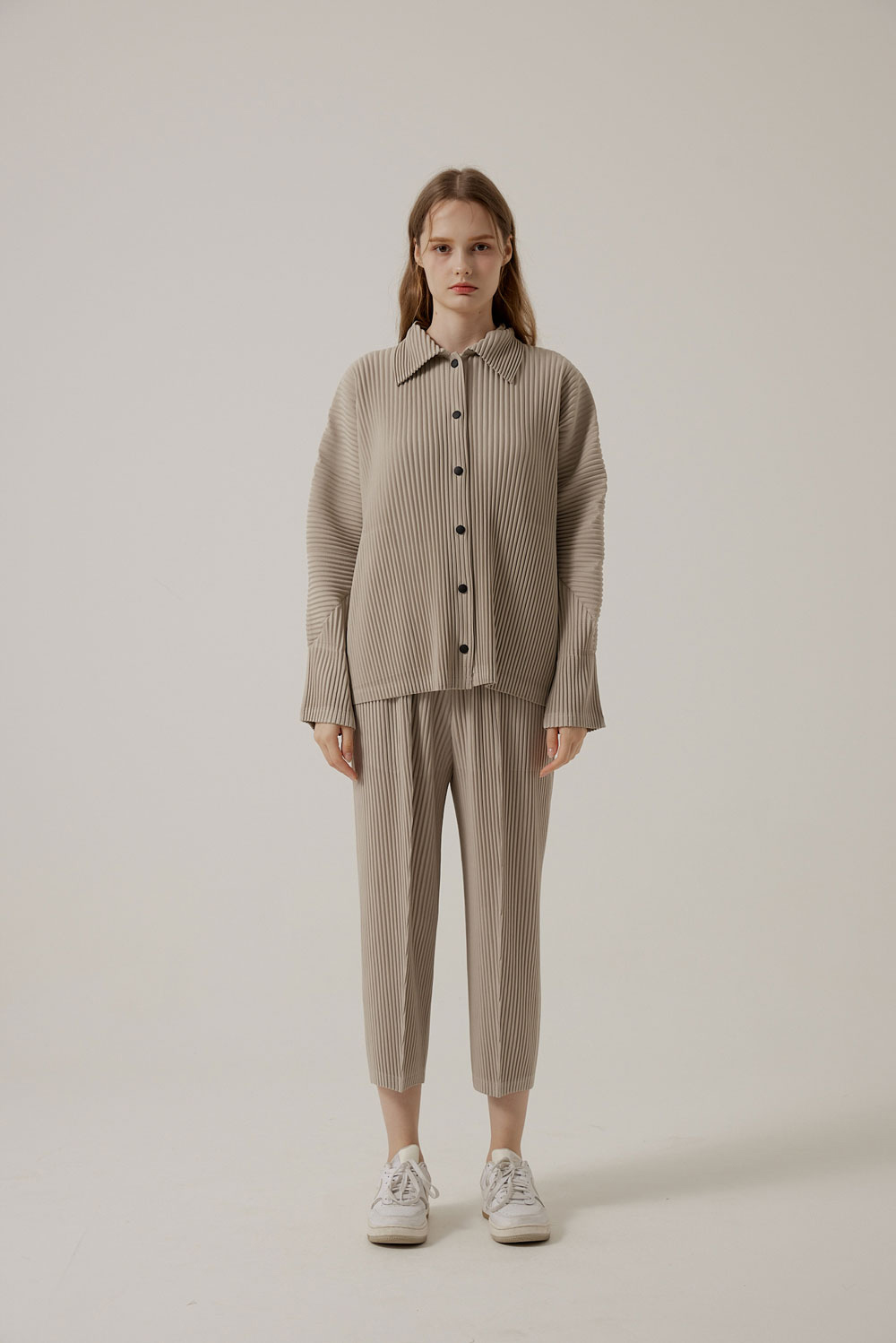몽플리쎄 공용 턱 플리츠 스트레이트 팬츠 라이트 베이지
