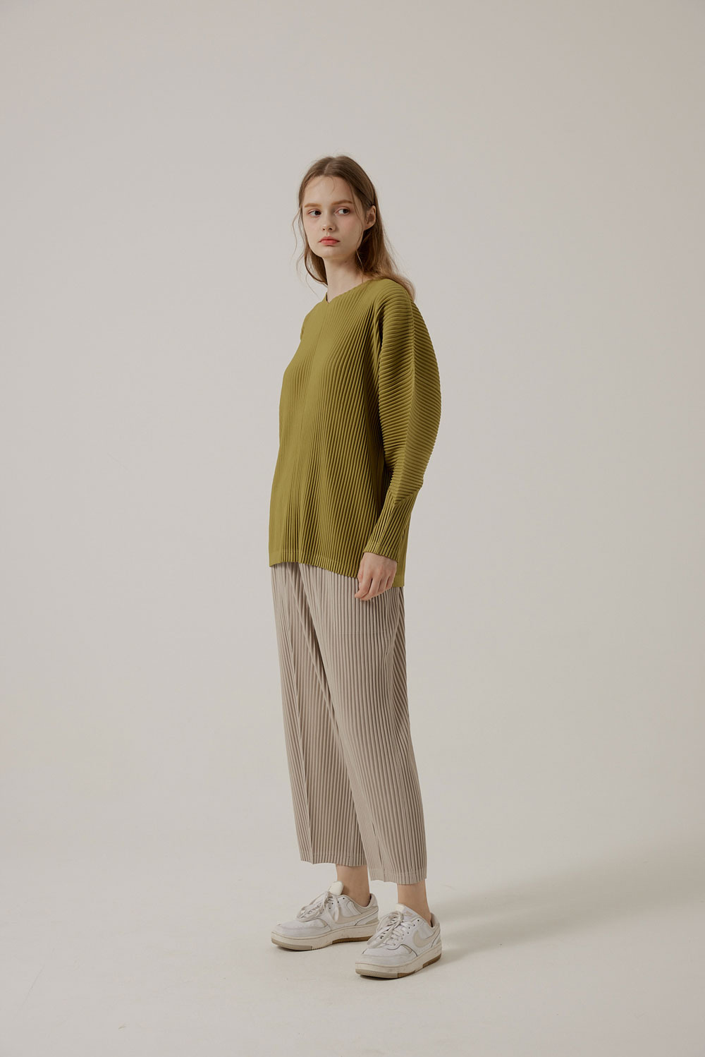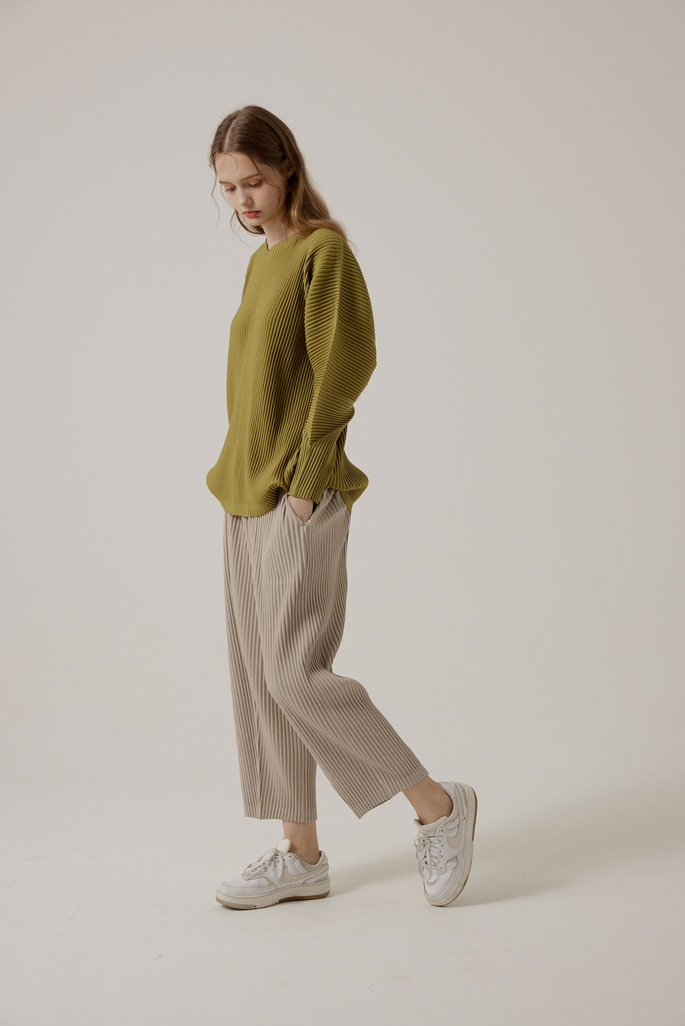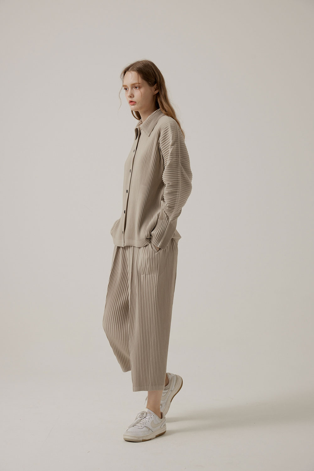 Monplisse Unisex Tuck Pleats Straight Pants Light Beige