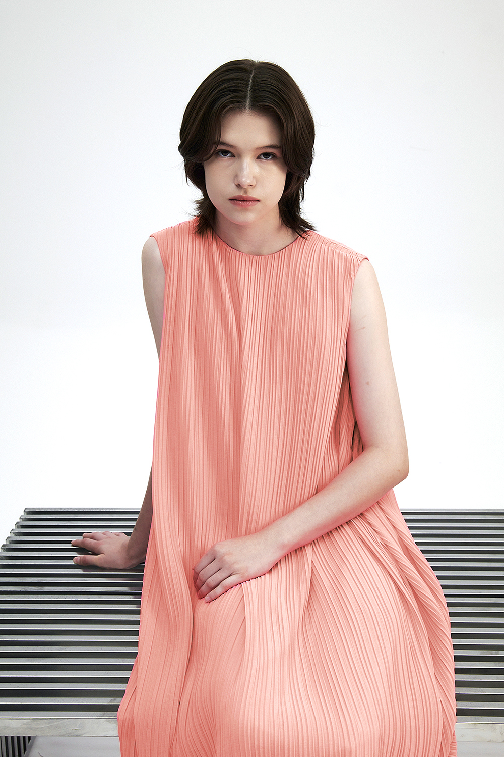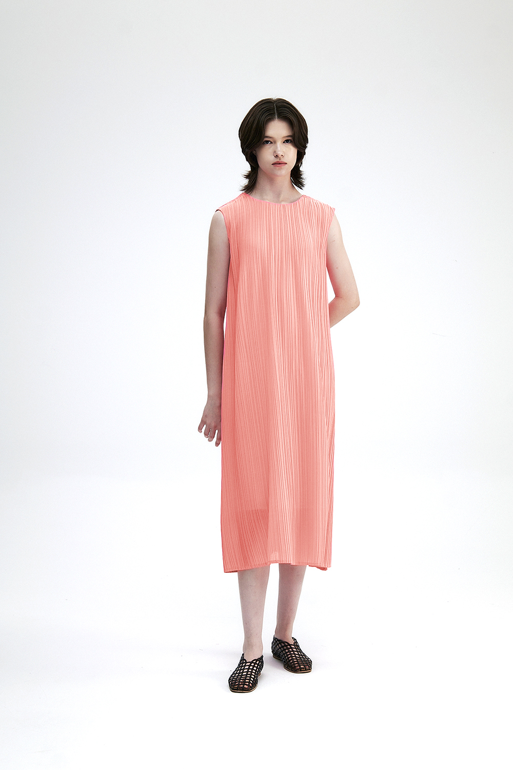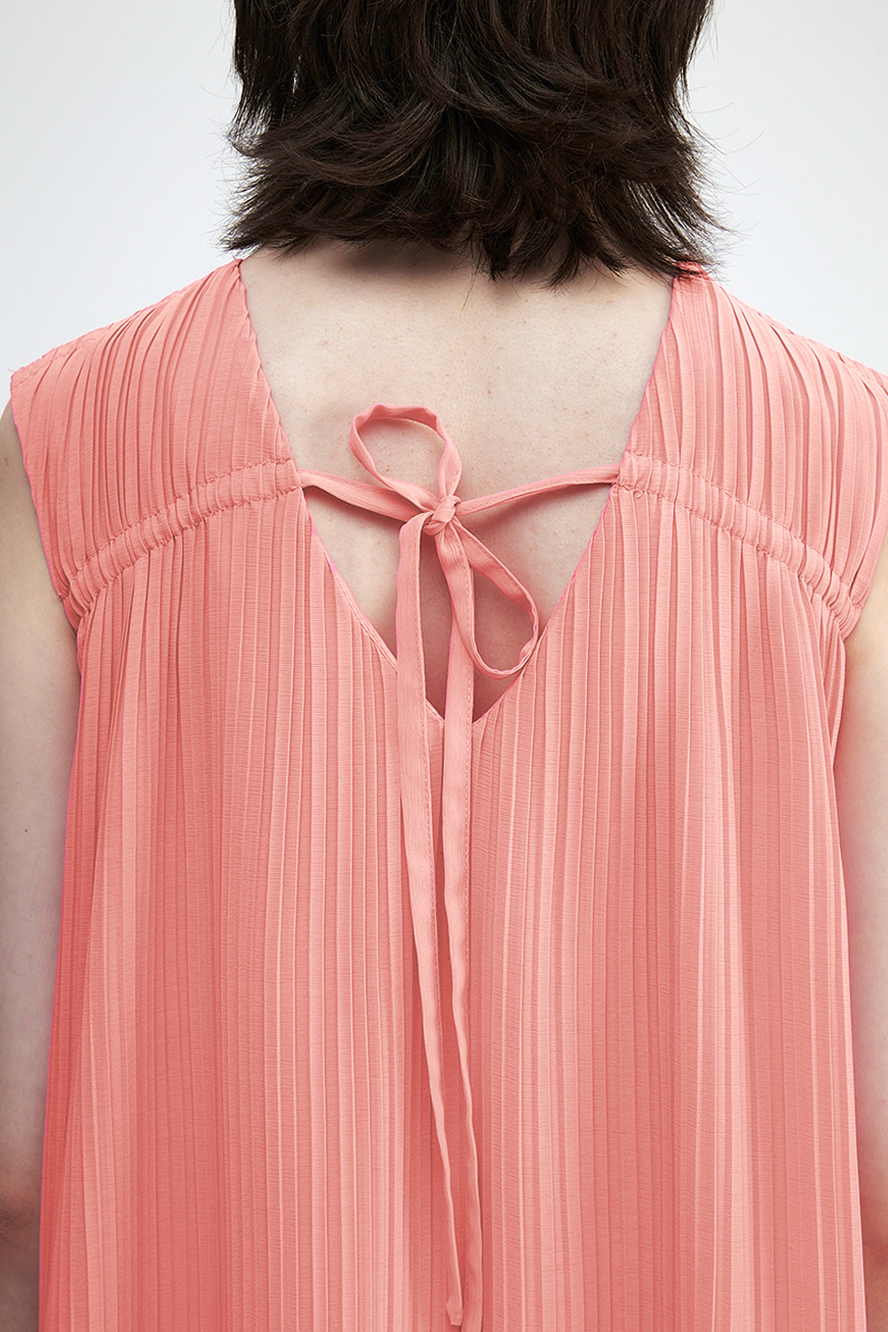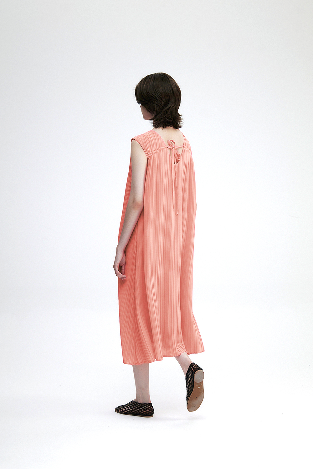 몽플리쎄 여성 백 스트링 민소매 리조트 플리츠 원피스 핑크