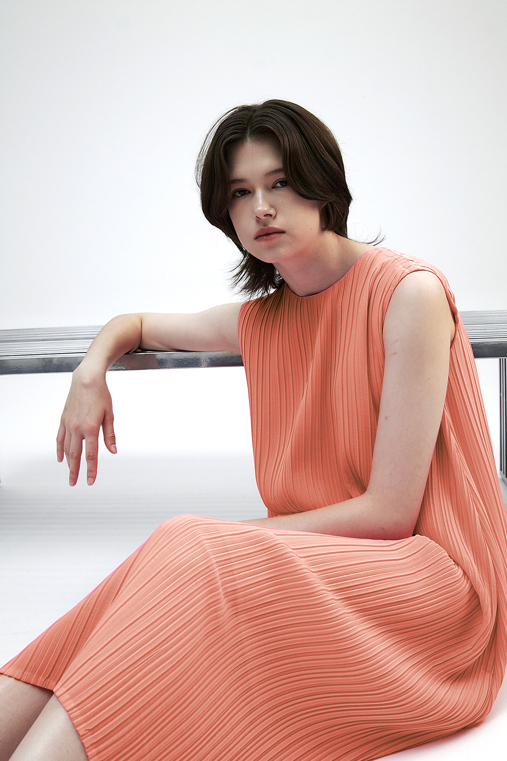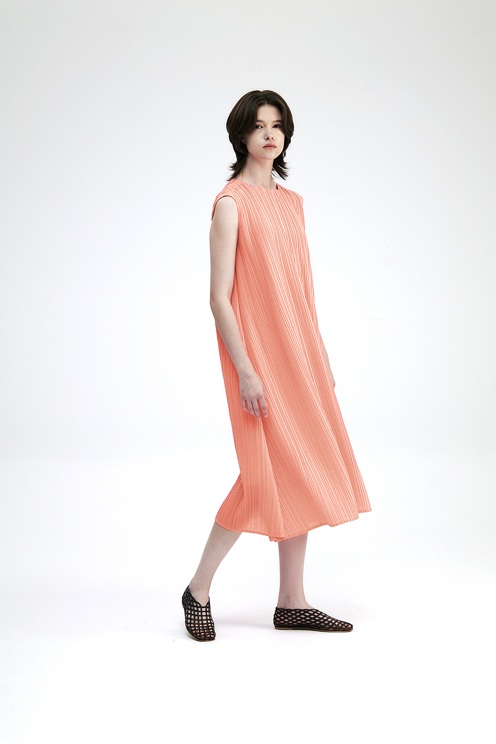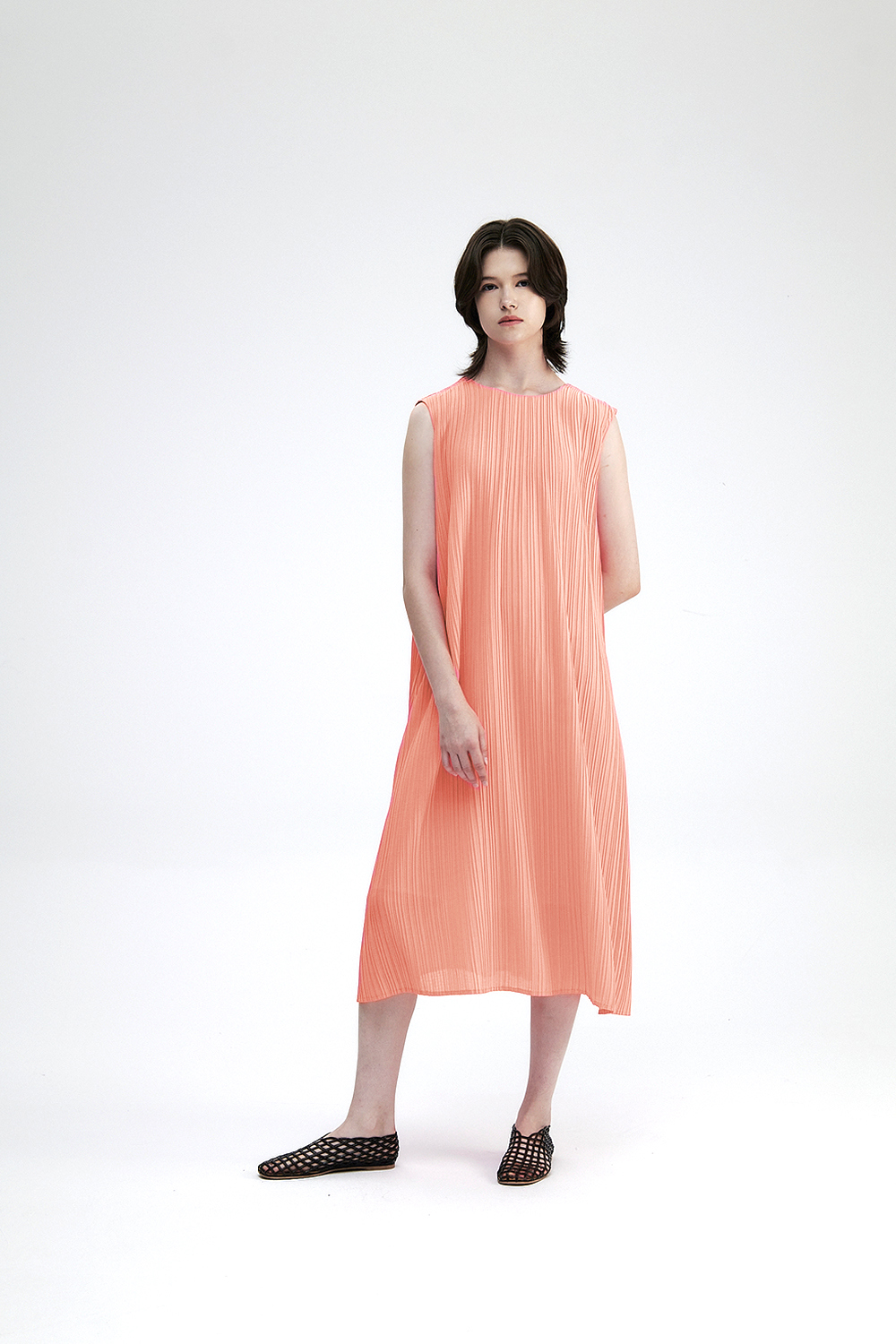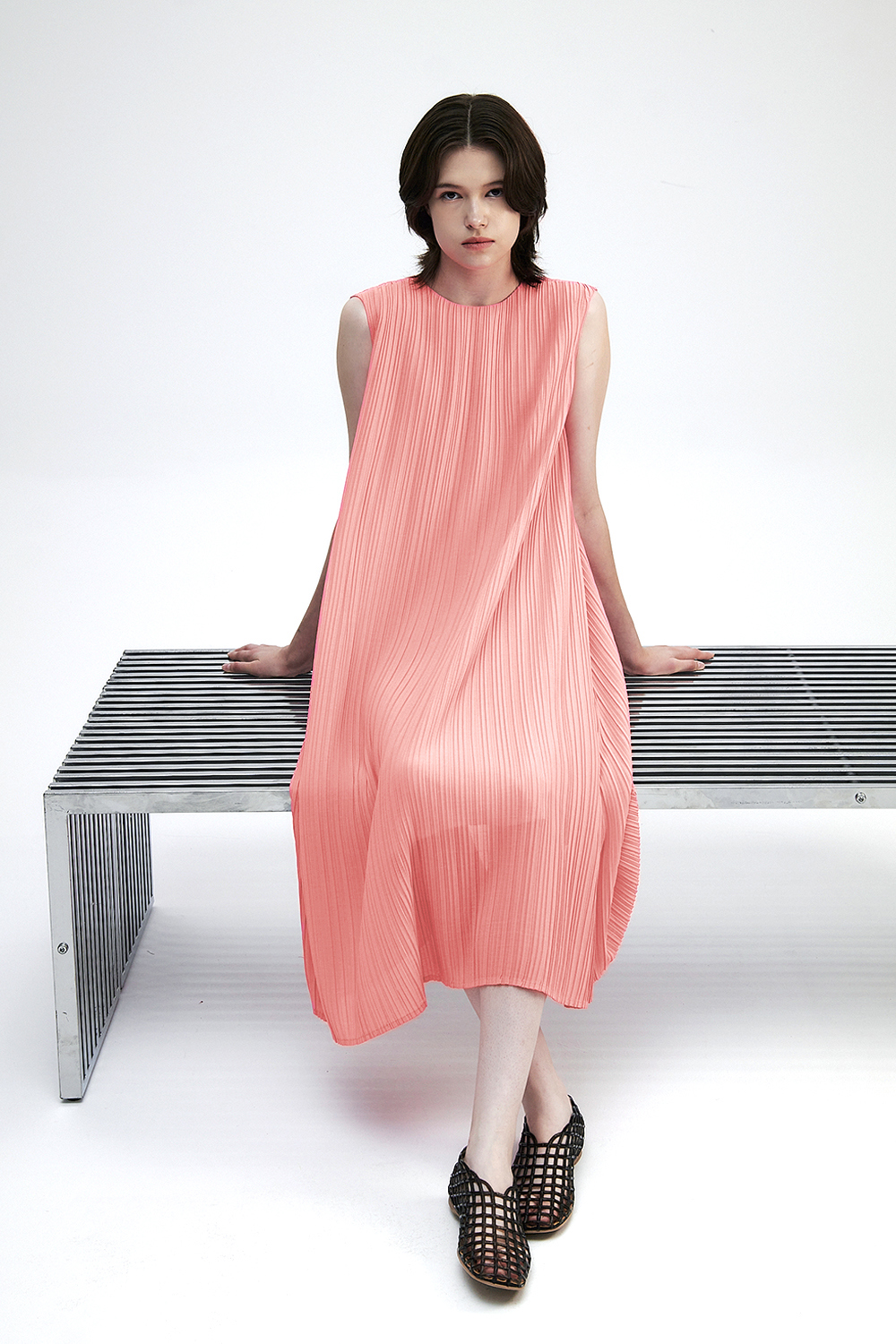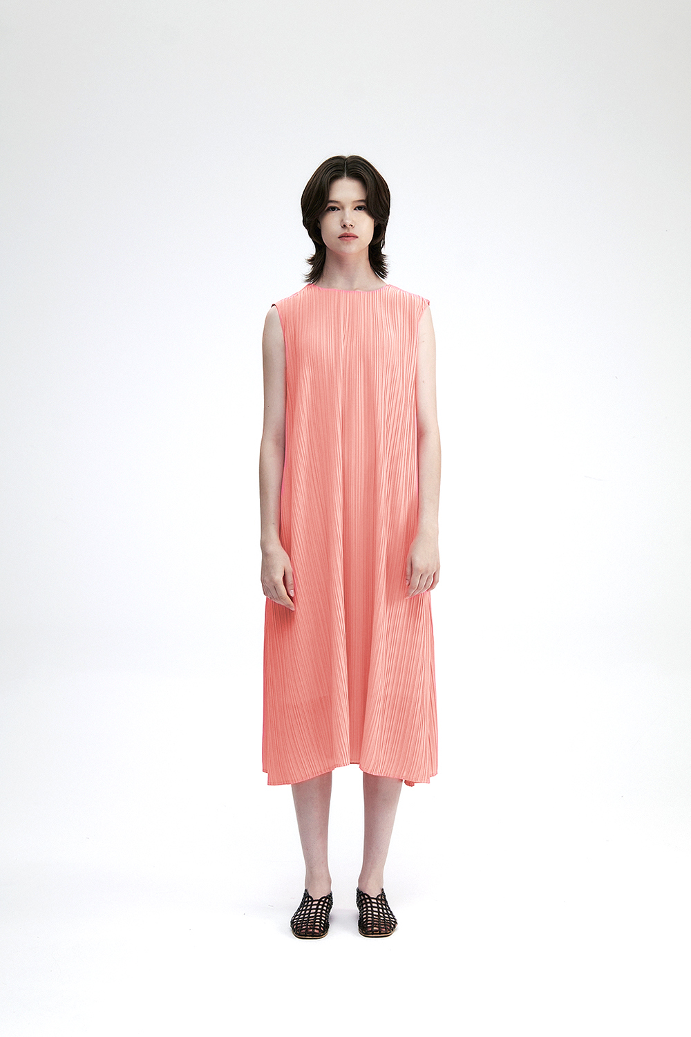 몽플리쎄 여성 백 스트링 민소매 리조트 플리츠 원피스 핑크