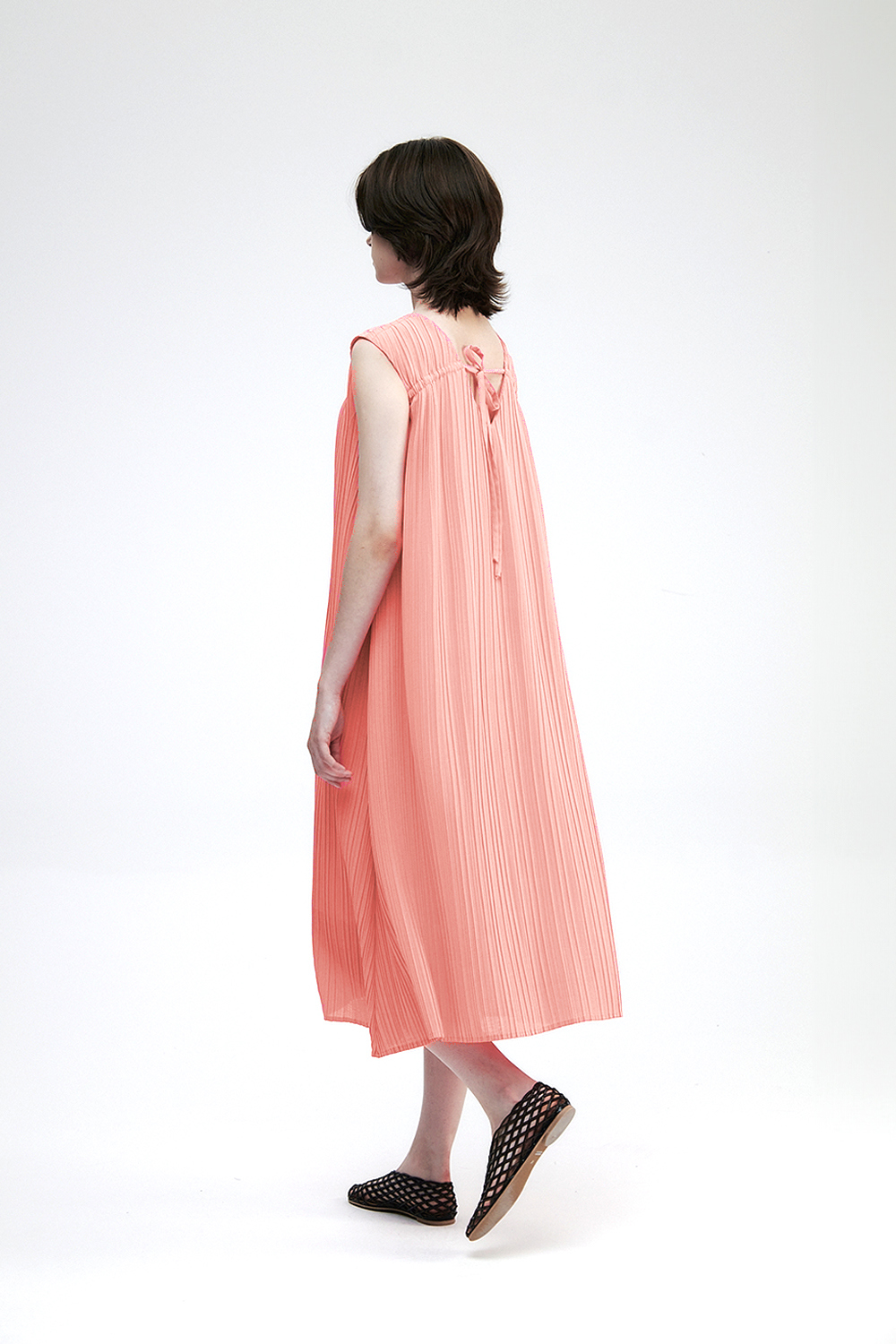 Monplisse Women Back String Sleeveless Resort Pleats Dress Pink
