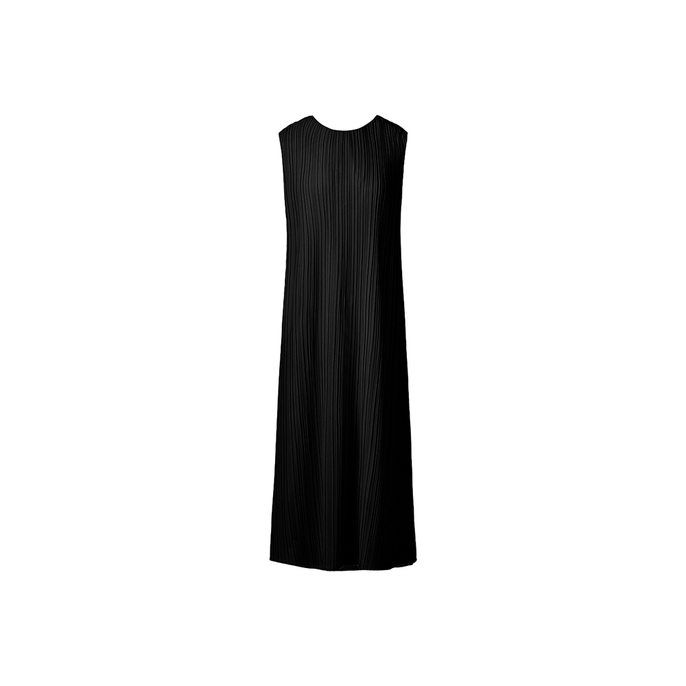 몽플리쎄 여성 백 스트링 민소매 리조트 플리츠 원피스 블랙